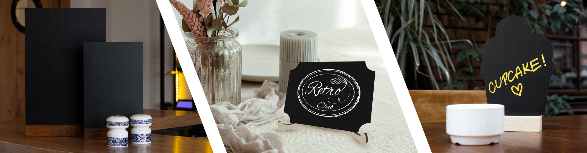 Tabliczki posiadają powierzchnię kredową, dzięki czemu z łatwością można pisać po nich kredą lub markerami kredowymi. Idealne, aby przekazać klientom wszystkie niezbędne informacje.