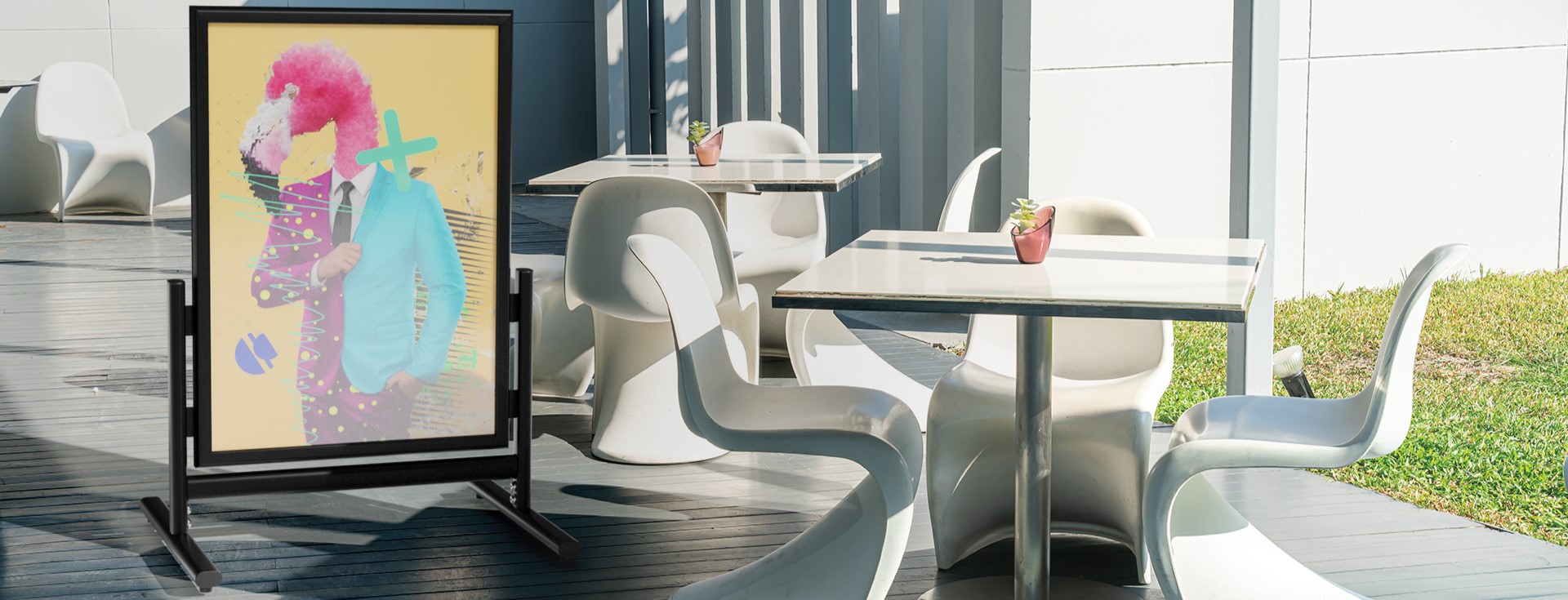 Potykacz reklamowy to przenośny, dwustronny stojak, który umożliwia prezentację reklamy o różnych rozmiarach w unikalny oraz ciekawy sposób. Można go umieścić na chodniku, w pobliżu sklepu, jak również wewnątrz kina, teatru, muzeum czy w restauracji zwiększając szansę na to, aby kluczowe przesłanie firmy zostało zauważone i zapamiętane. Potykacz reklamowy jest uniwersalnym produktem. Możemy w nim zaprezentować informacje o specjalnej ofercie, przedstawić menu lokalu, oznaczyć drogę do swojej siedziby, przedstawić agendę wydarzenia czy jakąkolwiek inną reklamę.