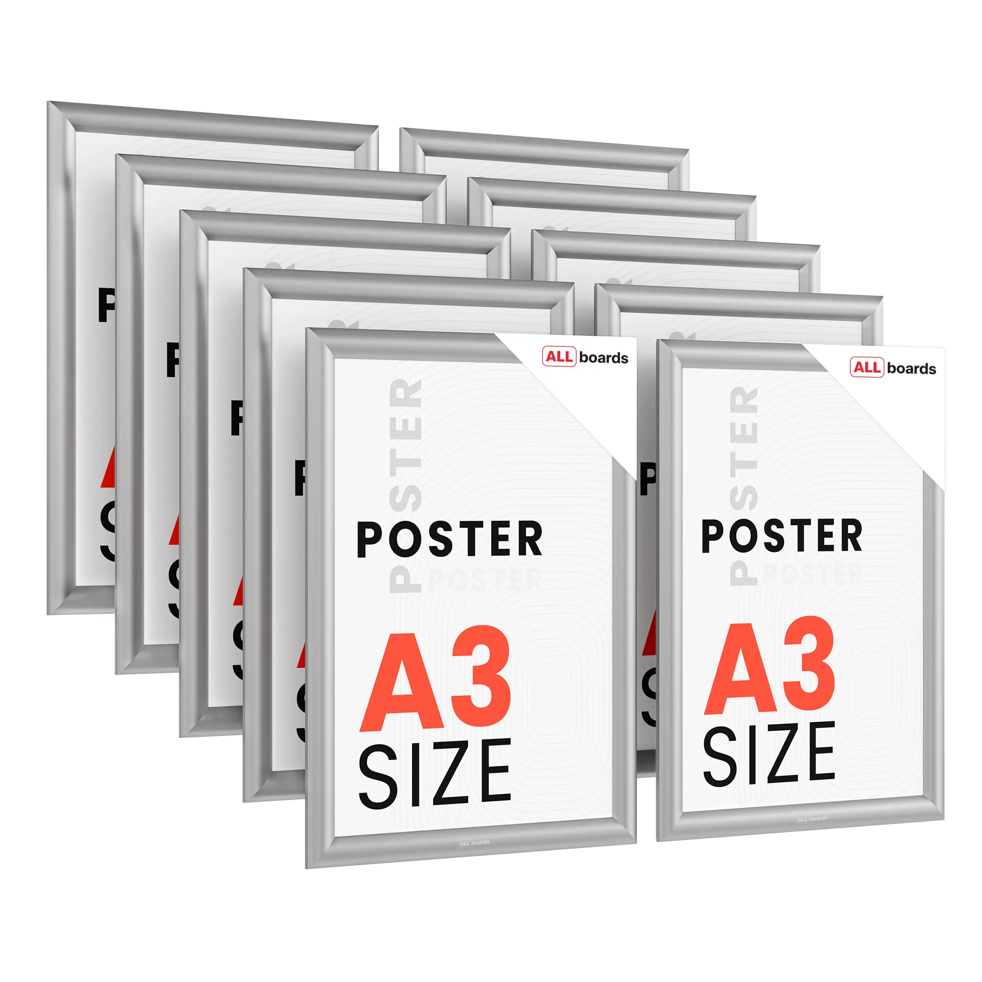 10x Ramka plakatowa A3 OWZ Srebrna rama zatrzaskowa ZESTAW