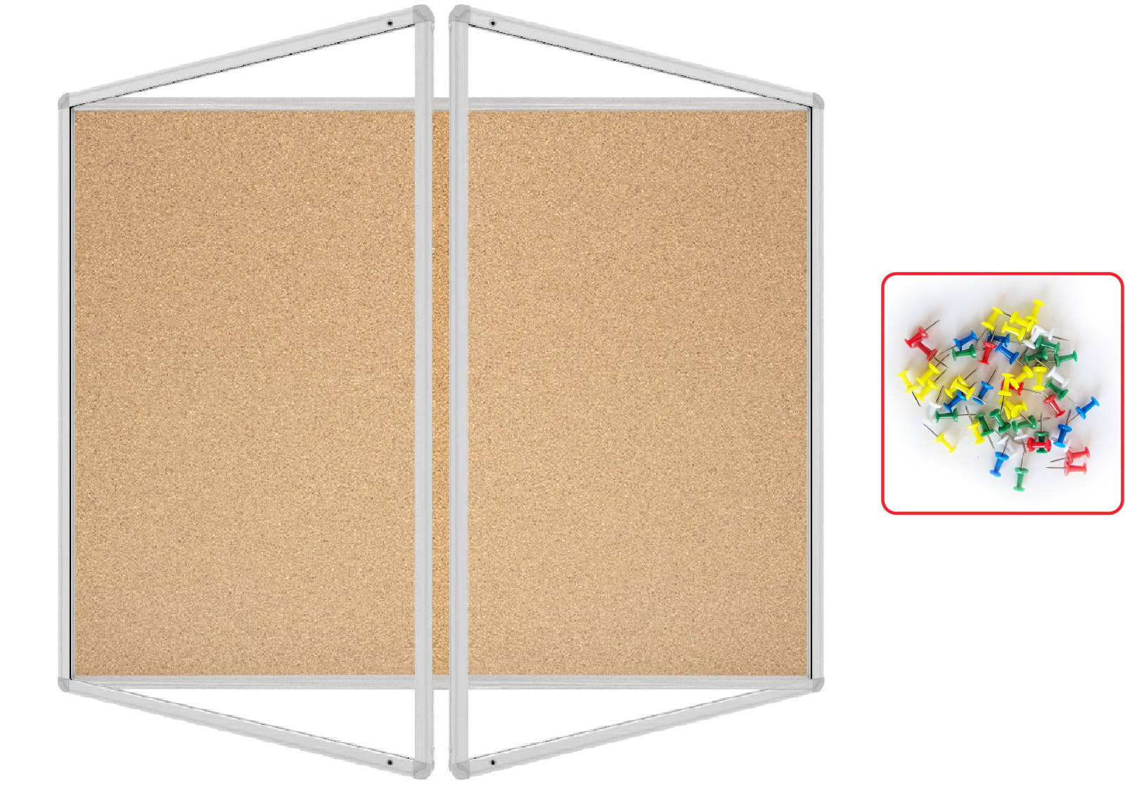 - Wysokiej jakości wykończenie - sercem gabloty jest tablica korkowa, która pozwala na łatwe przypinanie dokumentów za pomocą pinezki czy igły. Rama gabloty wykonana jest z wytrzymałego aluminium w srebrnym kolorze.