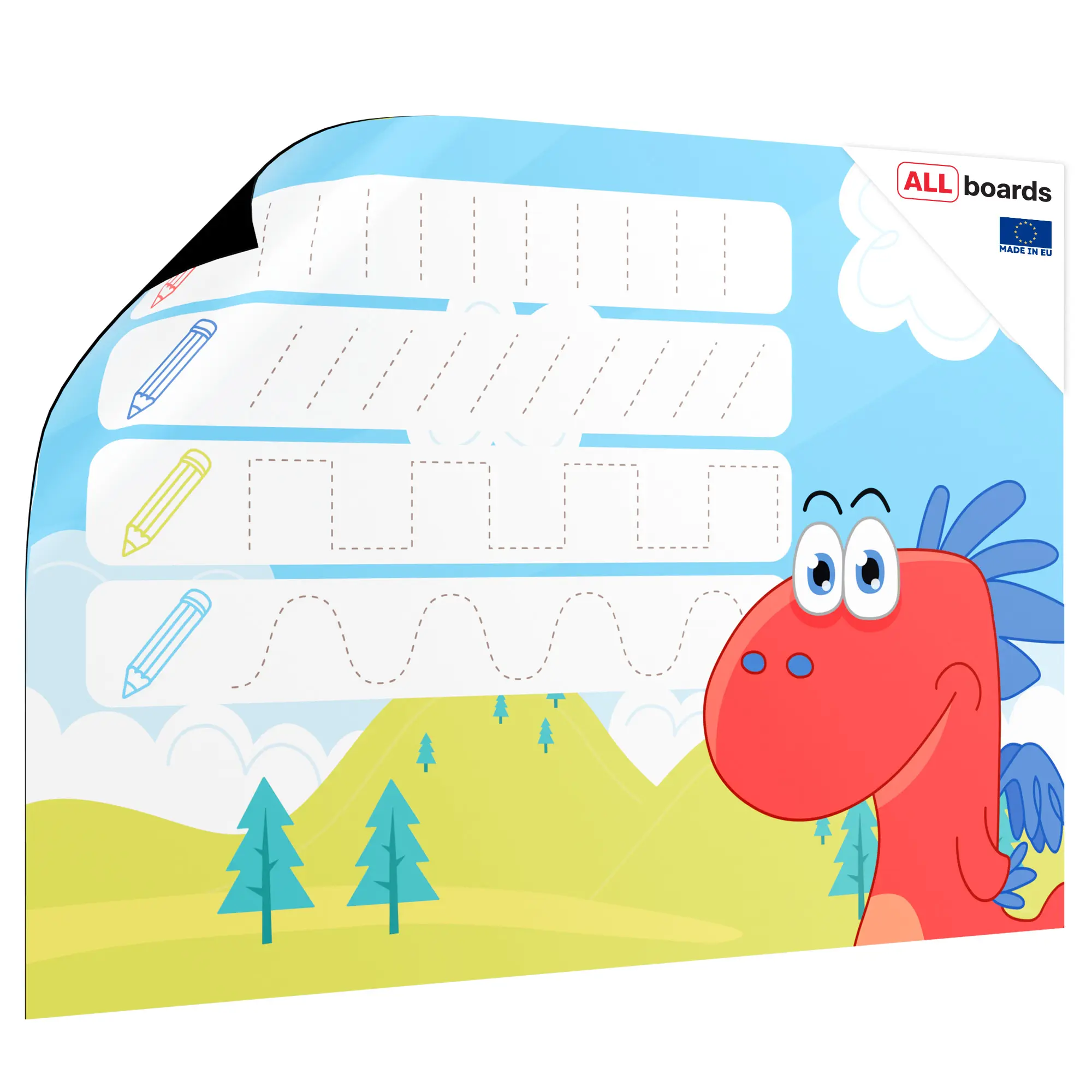 Nakładka magnetyczna sprawdzi się zarówno w domu, jak i w środowisku szkolnym. Kolorowy nadruk ze Smokiem Edziem na tle bajkowego otoczenia pobudza wyobraźnię dziecka i zachęca je do nauki, rysowania oraz kreatywnej zabawy. Dzięki nakładce w prosty sposób można prezentować potrzebne informacje, wykonywać ćwiczenia i zadania edukacyjne, a po skończonej pracy łatwo ją wyczyścić za pomocą gąbki lub ściereczki.