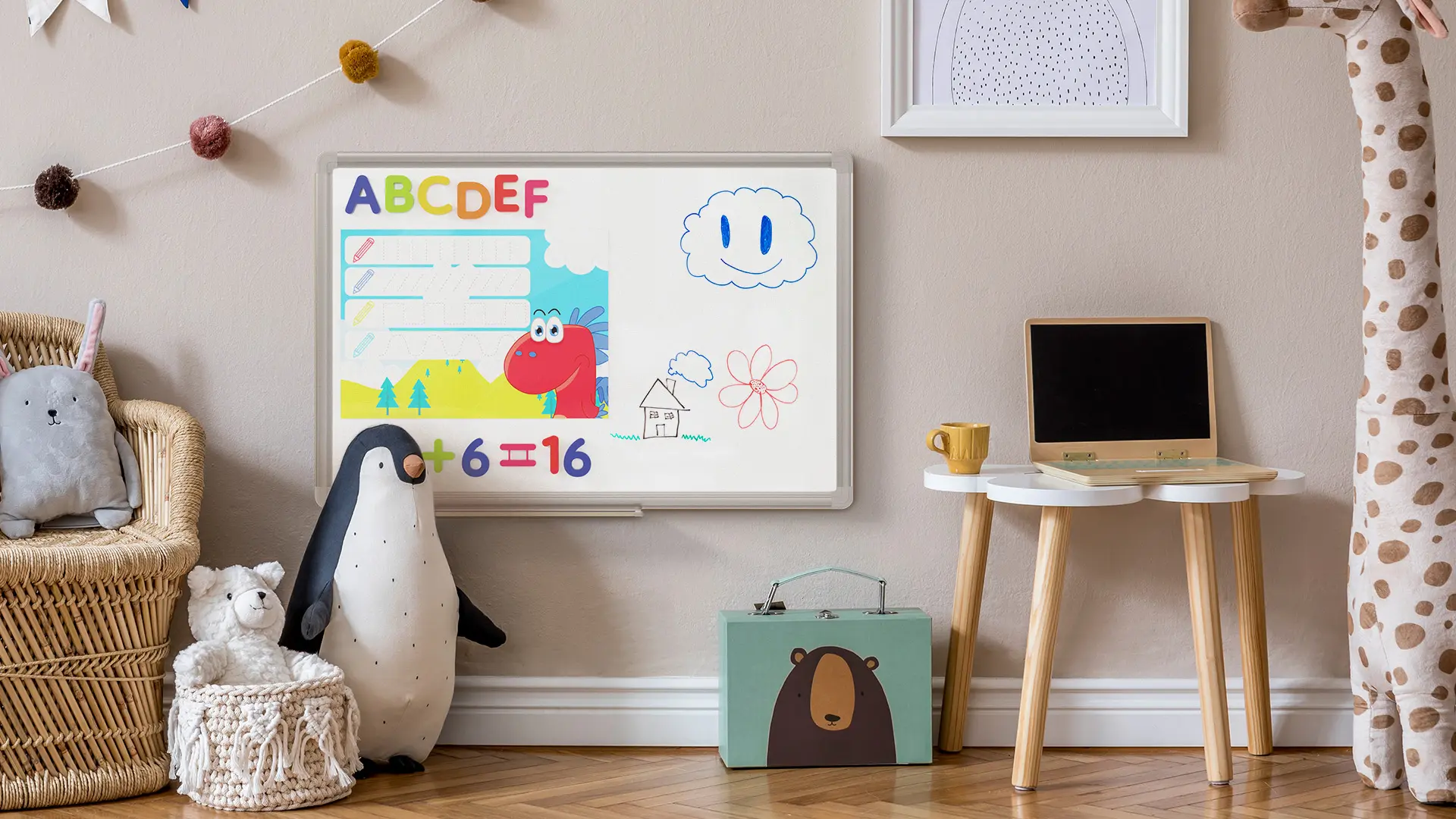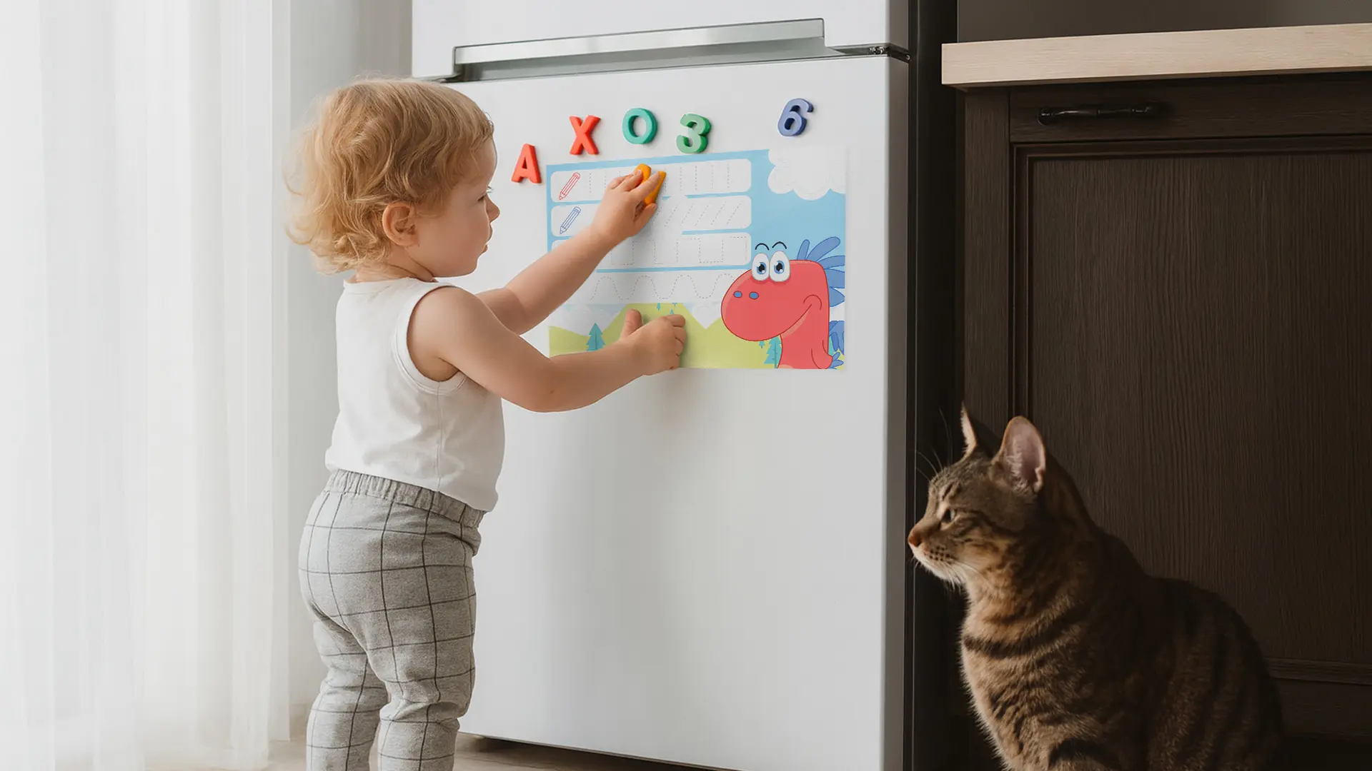 • NOWOCZESNE ROZWIĄZANIE – tył nakładki pokryto czarną folią magnetyczną, co zapewnia idealne przyleganie i stabilność podczas ćwiczenia literek, wykonywania działań, a także zabawy.