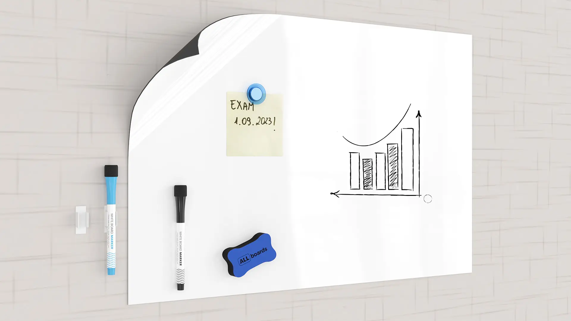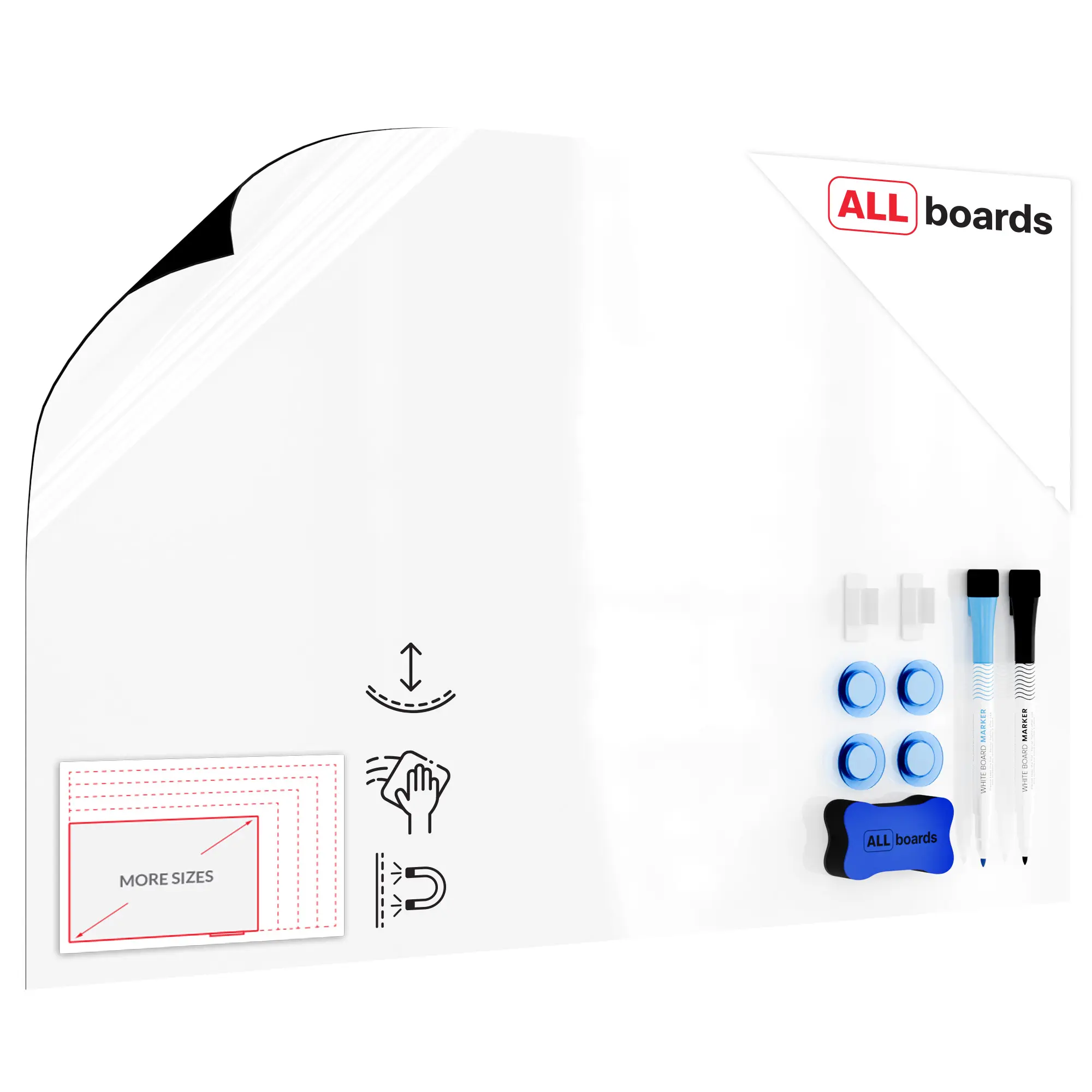 Nakładka samoprzylepna suchościeralna ALLboards może być traktowana jako supercienka tablica, pokryta z tyłu warstwą kleju, dzięki czemu z łatwością przyczepisz ją do wybranej ściany czy innej gładkiej powierzchni – szybko, łatwo i bez wiercenia!  Nakładka nie przyczepia się do tablicy magnetycznej.