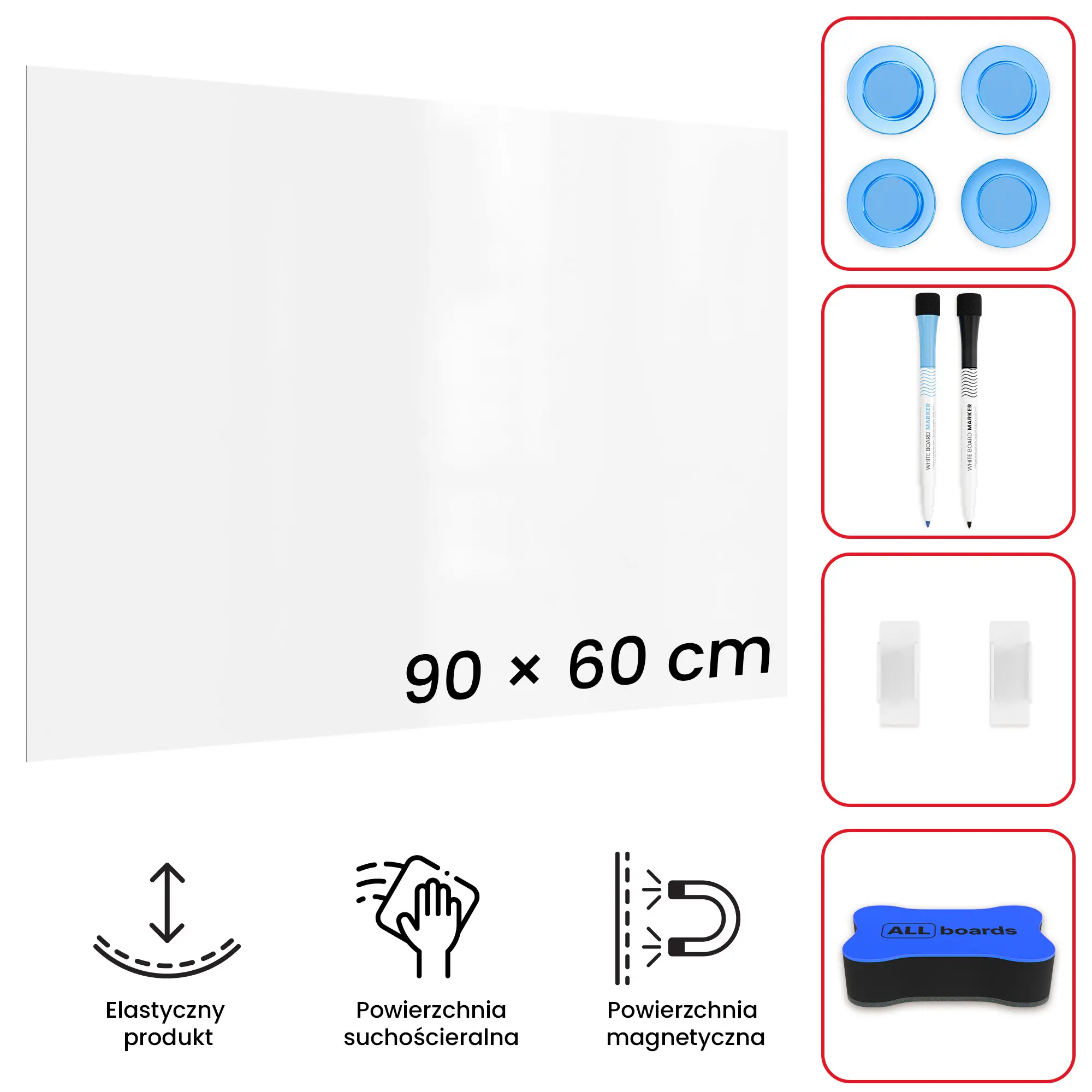 - GRATIS — w zestawie znajduje się gąbka, 4 magnesy i 2 markery.