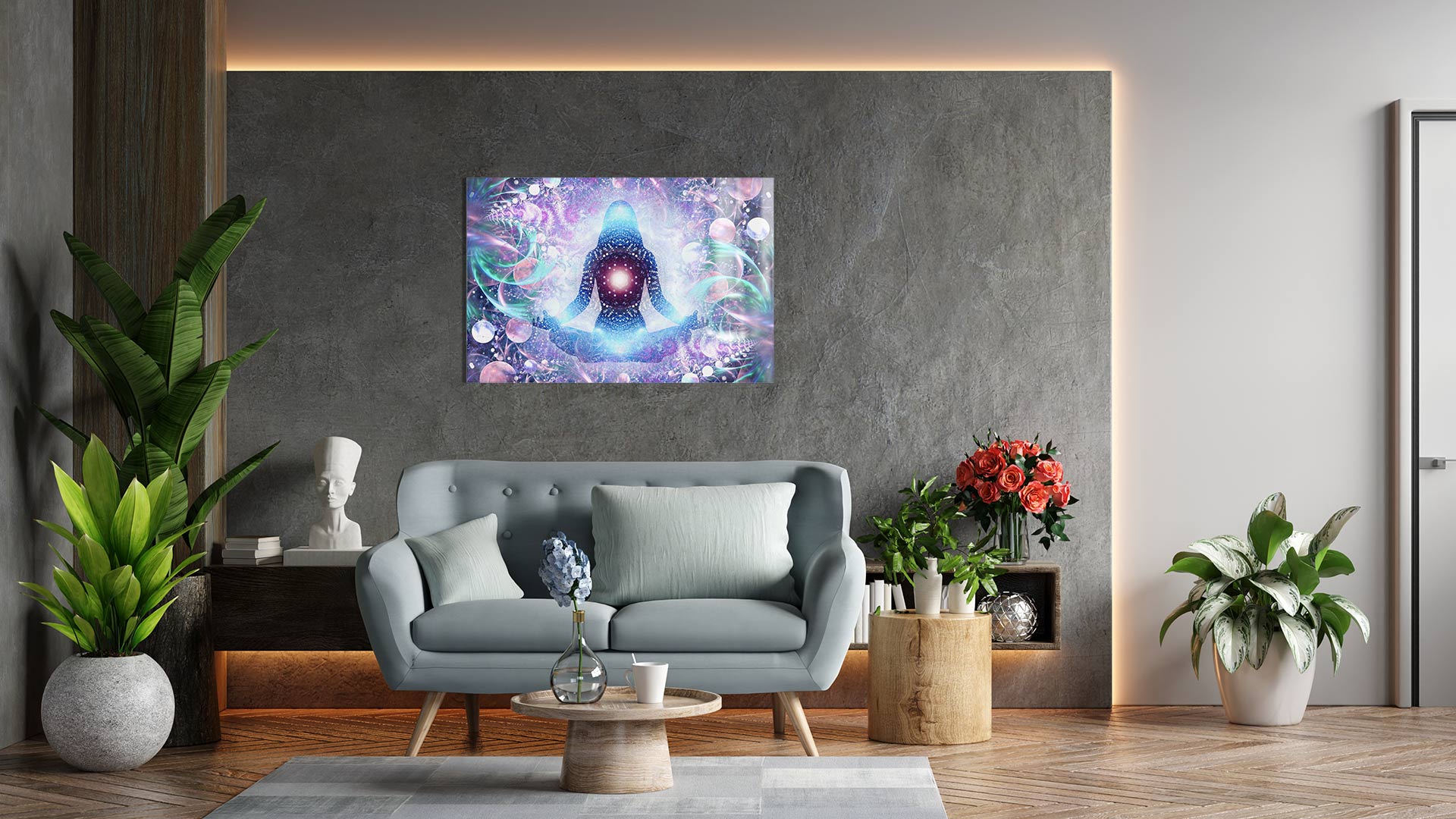 Obraz na szkle z motywem graficznym JOGA ZEN LOTOS to niekonwencjonalna i nowatorska ozdoba dla pomieszczenia. Doda uroku każdemu wnętrzu i znakomicie będzie prezentował się na ścianie. Do zalet szklanych obrazów, poza futurystycznym wyglądem, należy również gładkość powierzchni i delikatny połysk nadający charakter ozdobionemu pomieszczeniu.