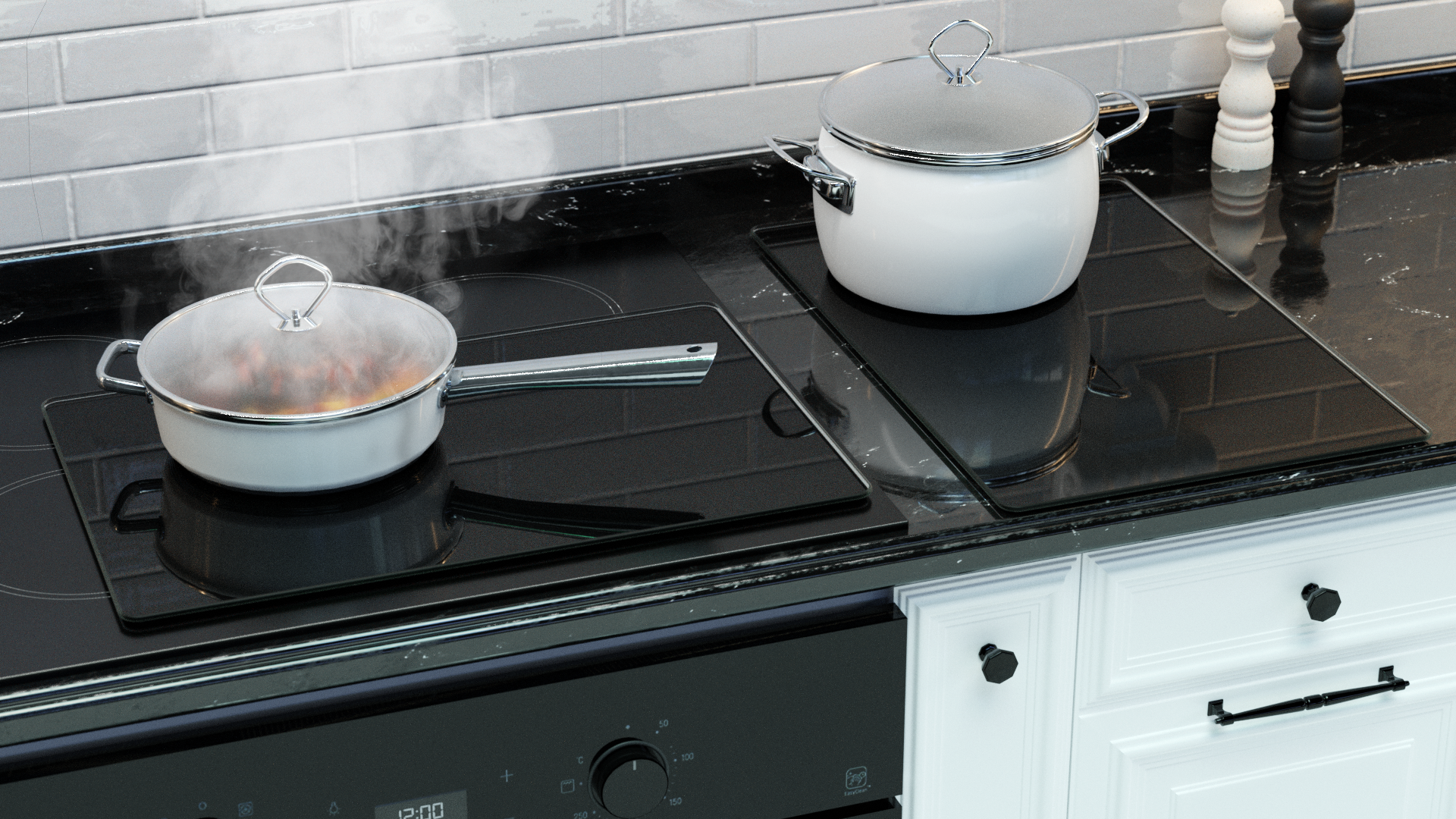 - dodatkowa powierzchnia robocza - po zakryciu kuchenki szklaną płytą maskującą zyskujemy w kuchni dodatkową powierzchnią roboczą