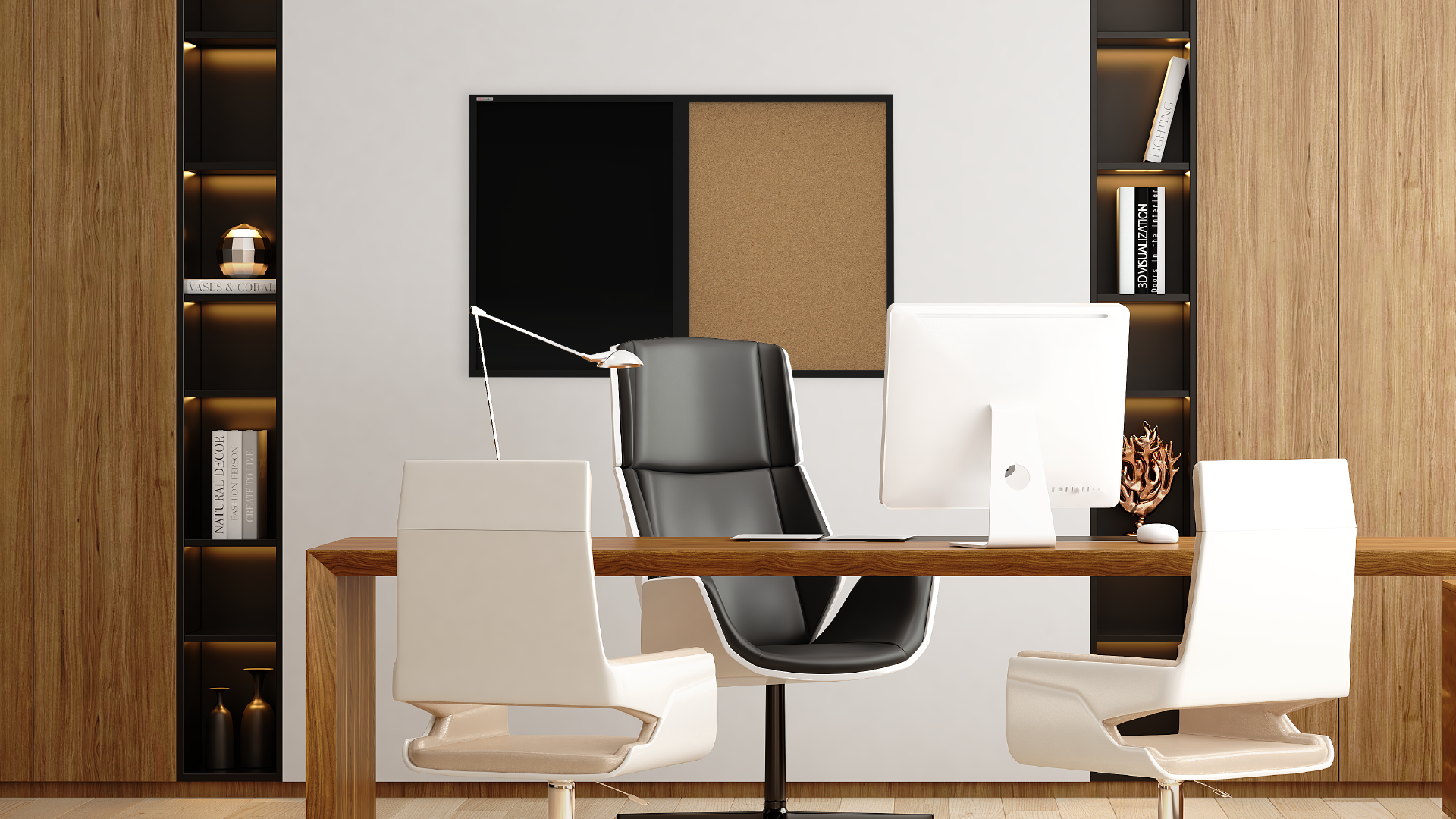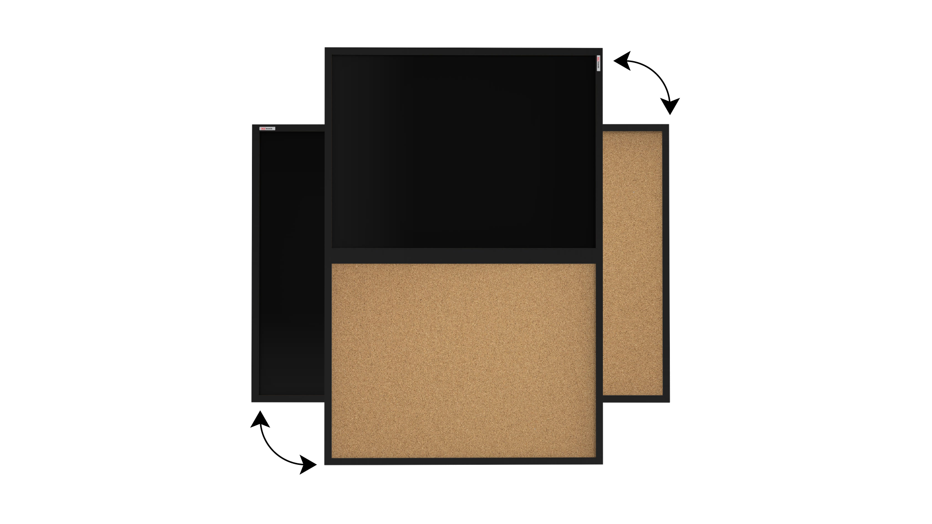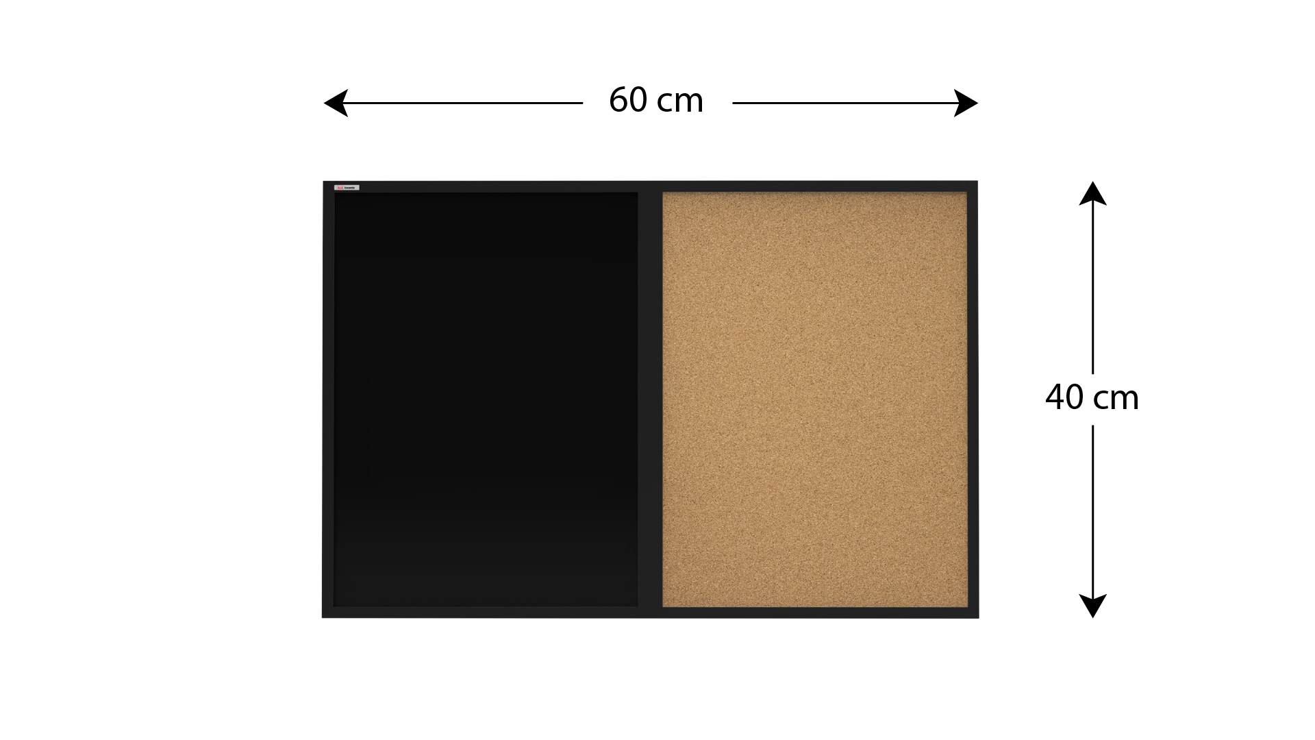 - Funkcjonalność i wygoda - dzięki różnym powierzchniom, tablica zyskuje funkcjonalność kilku tablic. Tablica korkowa pozwala przypinać do niej pinezki lub igły. Tablica magnetyczna kredowa pozwala na pisanie po niej markerami kredowymi oraz wykorzystywanie magnesów, tak by móc wyeksponować ważne informację, notatki czy też zdjęcia.