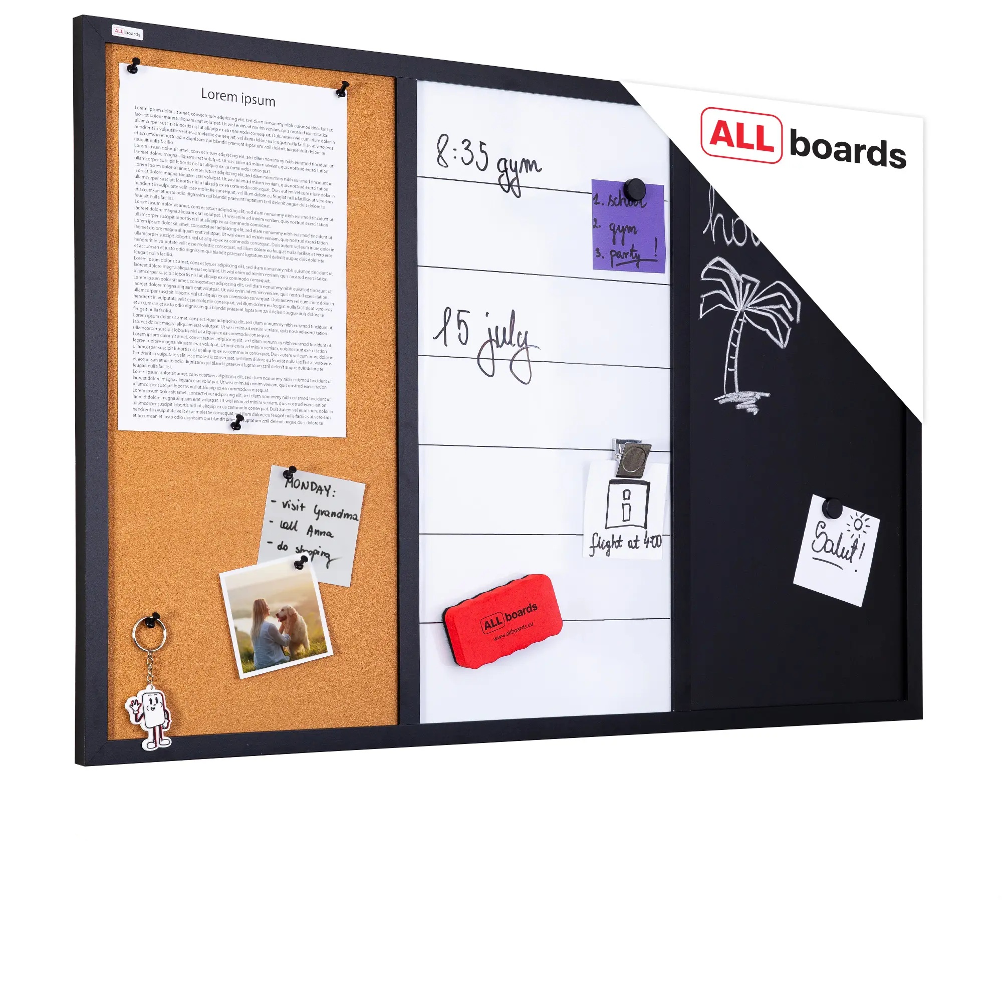 OUTLET Tablica combi 3 w 1: suchościeralno-magnetyczna biała, magnetyczno-kredowa czarna oraz korkowa 90x60 cm