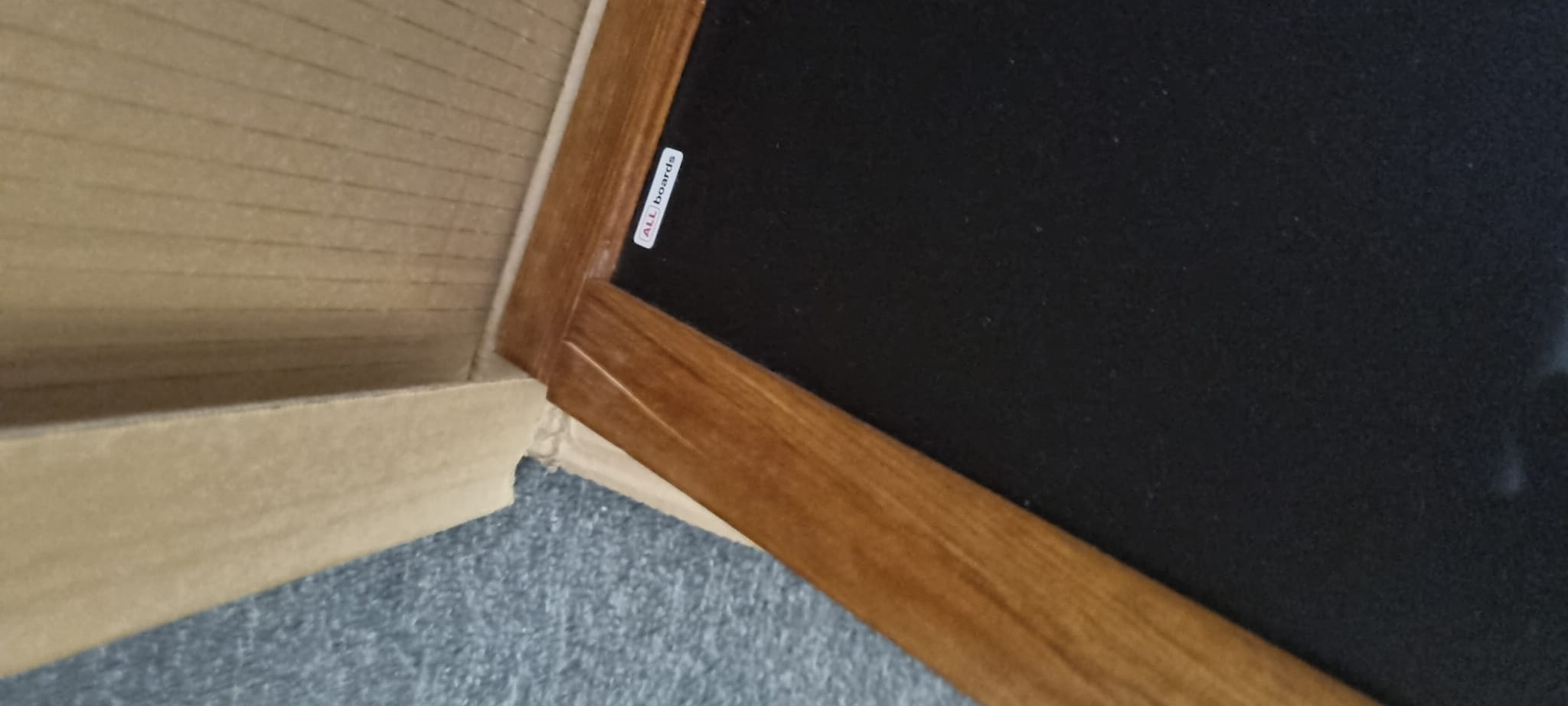 - POWIERZCHNIA - tablica posiada czarną, kredową powierzchnię do pisania, wykonaną z płyty HDF o wysokiej gęstości. Jest bardzo trwała, można po niej pisać kredą oraz markerami kredowymi. Tablica jest łatwa w pielęgnacji.