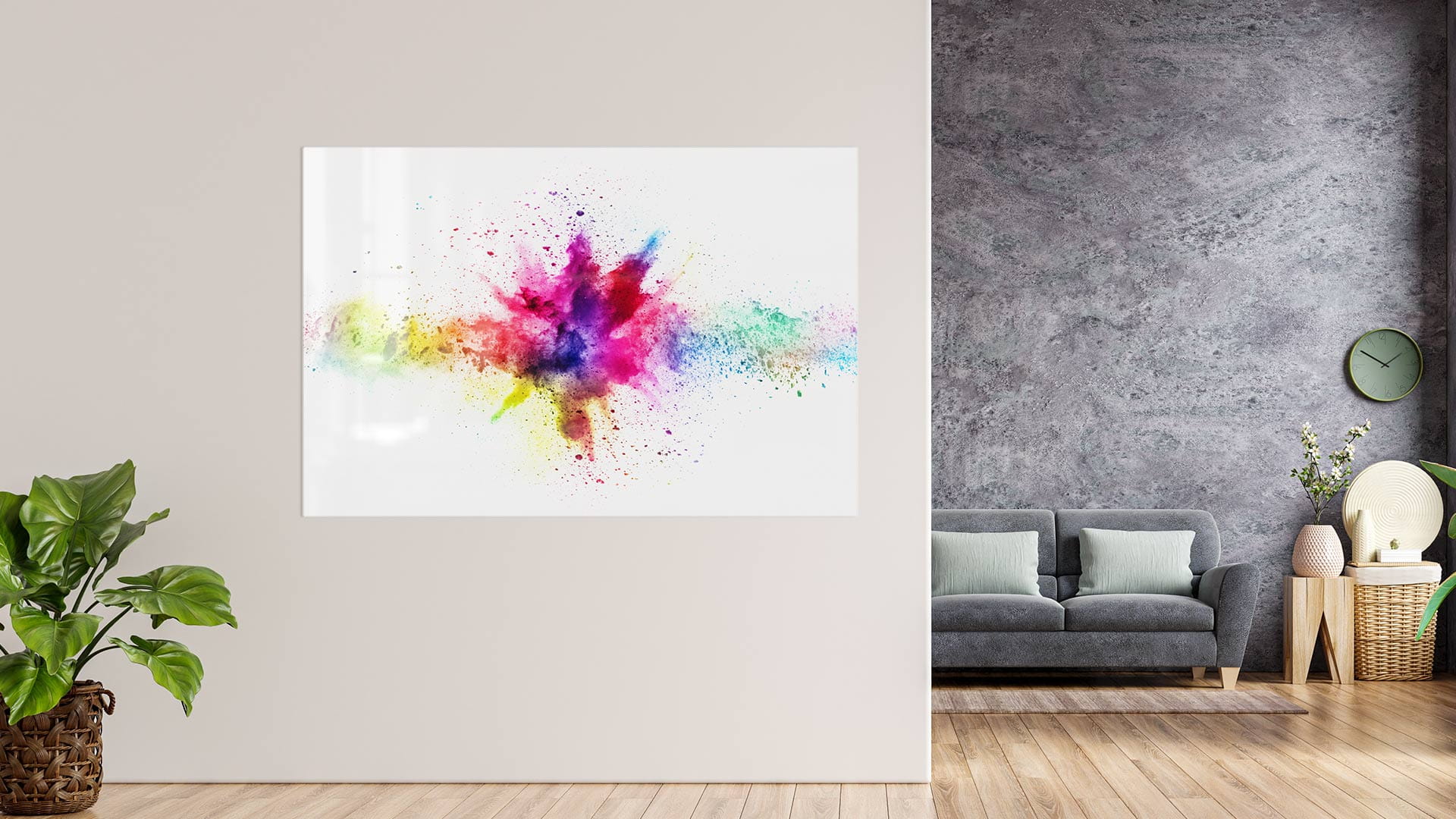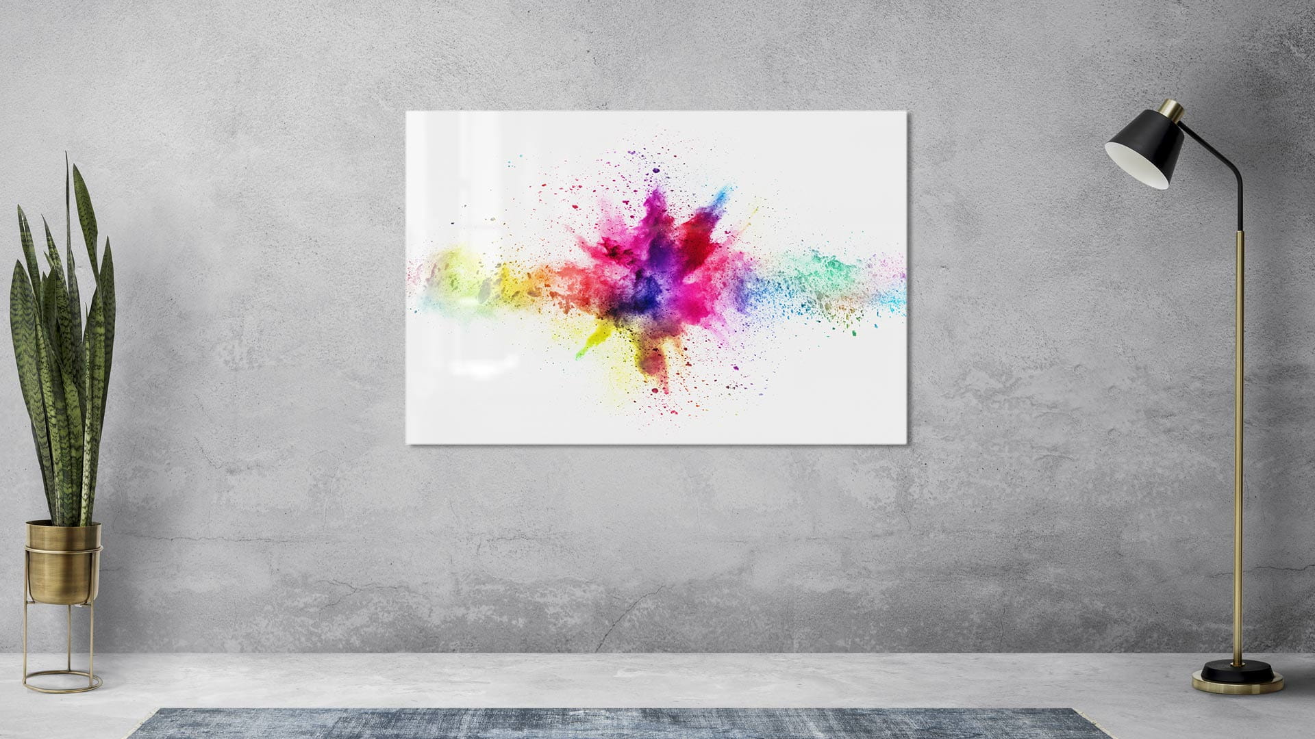 Obraz na szkle z motywem graficznym HOLI ŚWIĘTO KOLORÓW to niekonwencjonalna i nowatorska ozdoba dla pomieszczenia. Doda uroku każdemu wnętrzu i znakomicie będzie prezentował się na ścianie. Do zalet szklanych obrazów, poza futurystycznym wyglądem, należy również gładkość powierzchni i delikatny połysk nadający charakter ozdobionemu pomieszczeniu.