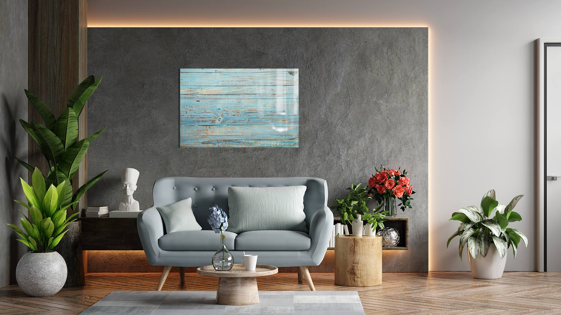 Obraz na szkle z motywem graficznym NIEBIESKA DESKA RETRO VINTAGE to niekonwencjonalna i nowatorska ozdoba dla pomieszczenia. Doda uroku każdemu wnętrzu i znakomicie będzie prezentował się na ścianie. Do zalet szklanych obrazów, poza futurystycznym wyglądem, należy również gładkość powierzchni i delikatny połysk nadający charakter ozdobionemu pomieszczeniu.