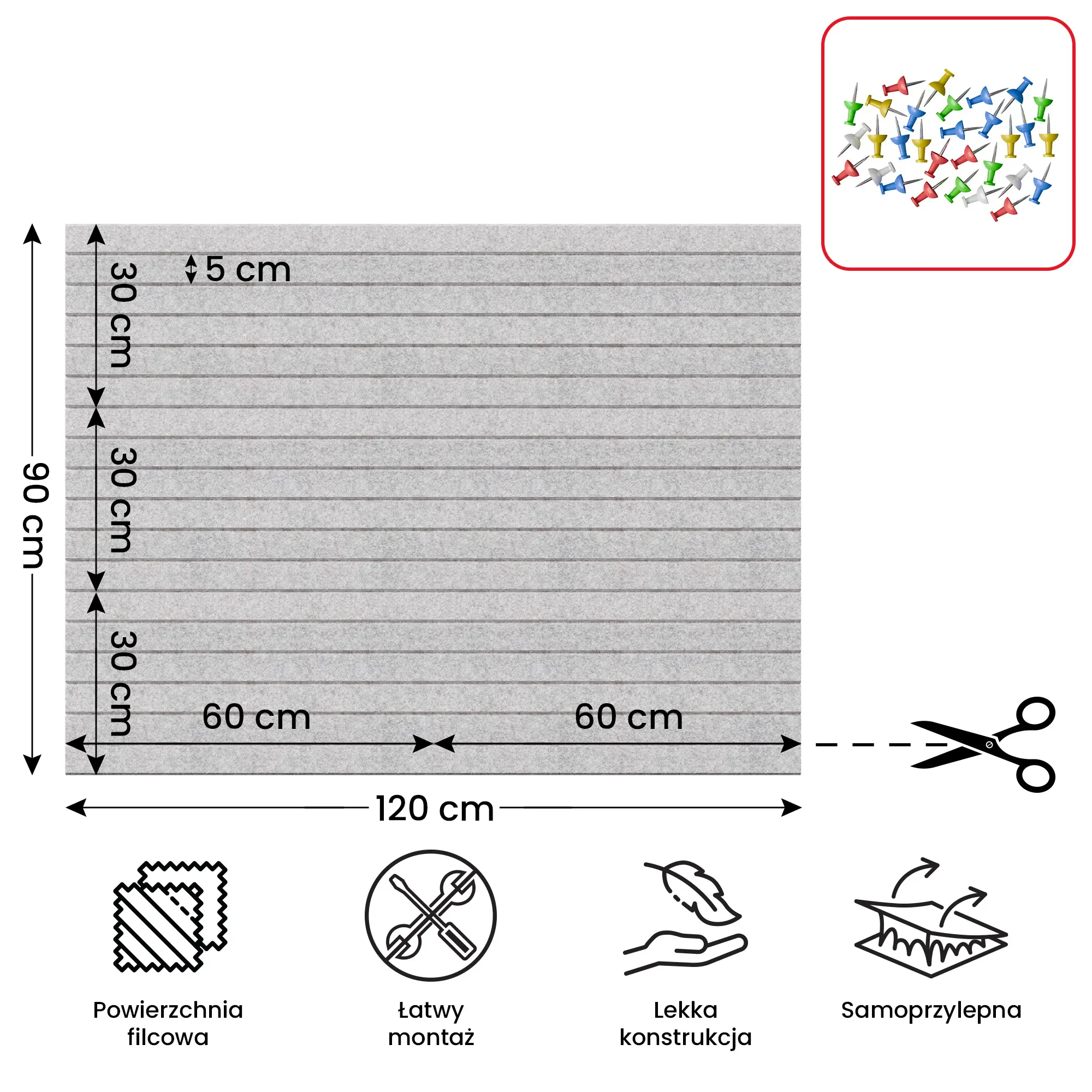 • PRAKTYCZNA PRZESTRZEŃ – filcowa powierzchnia umożliwia wygodne przypinanie notatek, zdjęć, planów czy inspiracji przy pomocy pinezek. Idealna do codziennego użytku w domu, biurze, szkole czy pokoju dziecka.