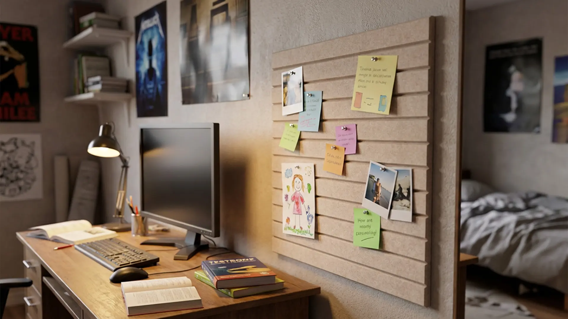 Panele ścienne filcowe to szybki sposób na zmianę aranżacji wnętrza i stworzenie funkcjonalnej przestrzeni na notatki, zdjęcia czy planery. Zamień pustą ścianę w miejsce pełne inspiracji – wystarczy odkleić zabezpieczenie i przykleić panel tam, gdzie chcesz!