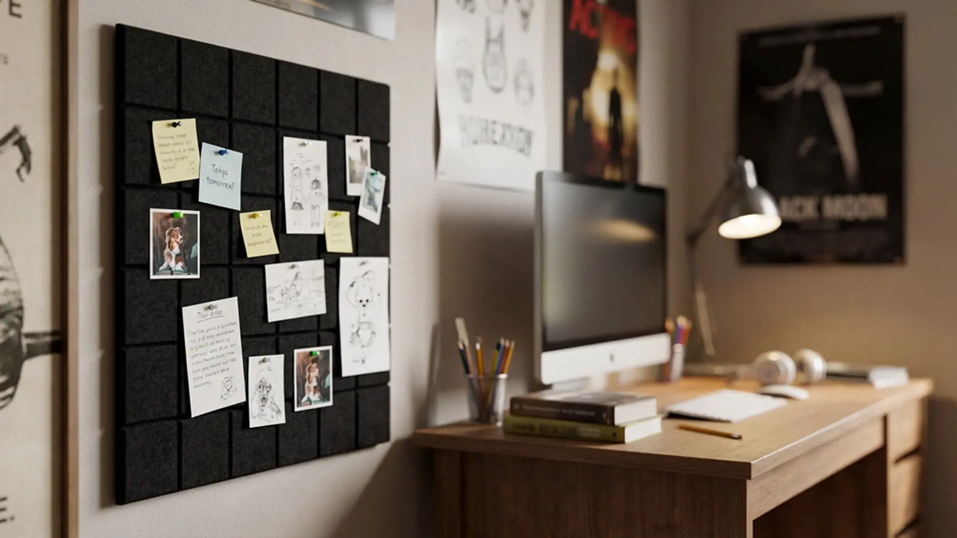 Panele ścienne filcowe to szybki sposób na zmianę aranżacji wnętrza i stworzenie funkcjonalnej przestrzeni na notatki, zdjęcia czy planery. Zamień pustą ścianę w miejsce pełne inspiracji – wystarczy odkleić zabezpieczenie i przykleić panel tam, gdzie chcesz!