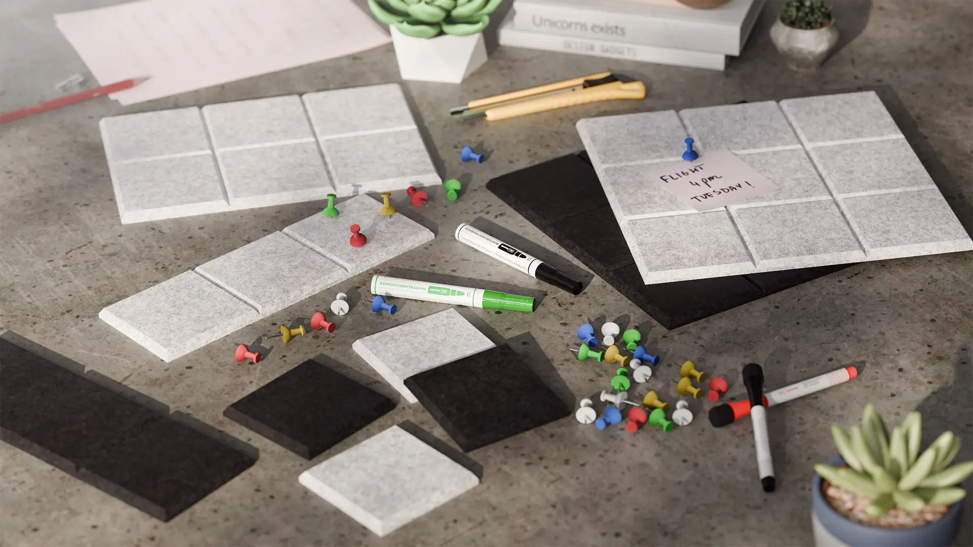 - WŁAŚCIWOŚCI WYGŁUSZAJĄCE – panele ścienne filcowe samoprzylepne pomagają redukować hałas, poprawiając komfort w codziennym użytkowaniu, zwłaszcza w większych i otwartych przestrzeniach.