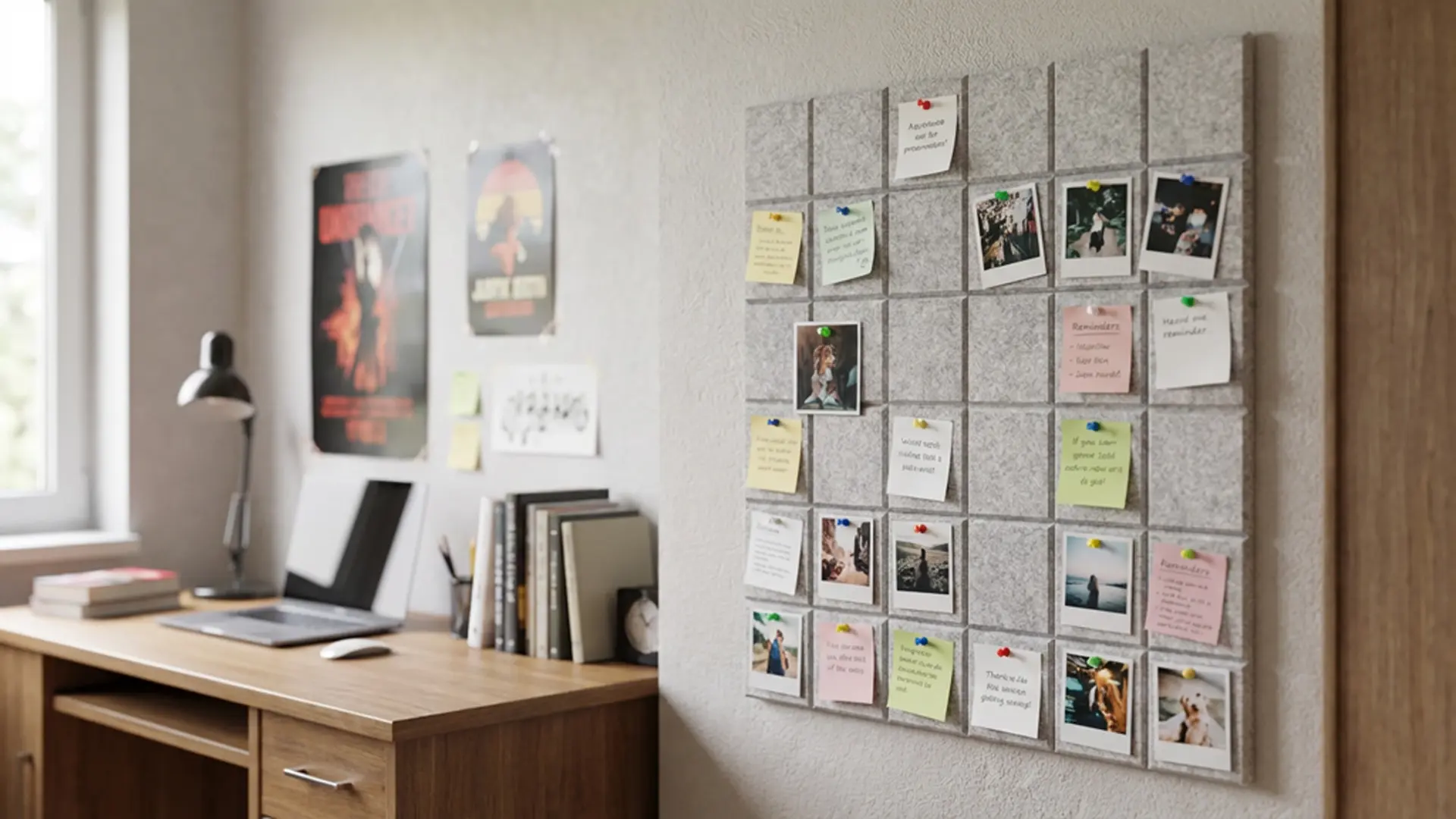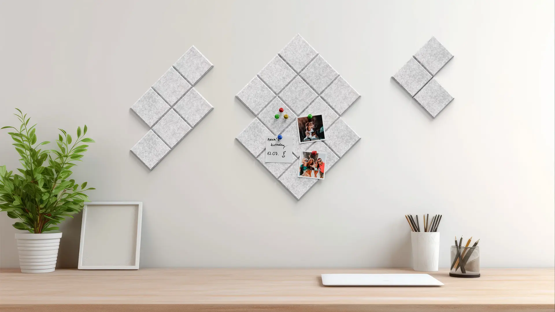 Panele ścienne filcowe to szybki sposób na zmianę aranżacji wnętrza i stworzenie funkcjonalnej przestrzeni na notatki, zdjęcia czy planery. Zamień pustą ścianę w miejsce pełne inspiracji – wystarczy odkleić zabezpieczenie i przykleić panel tam, gdzie chcesz!