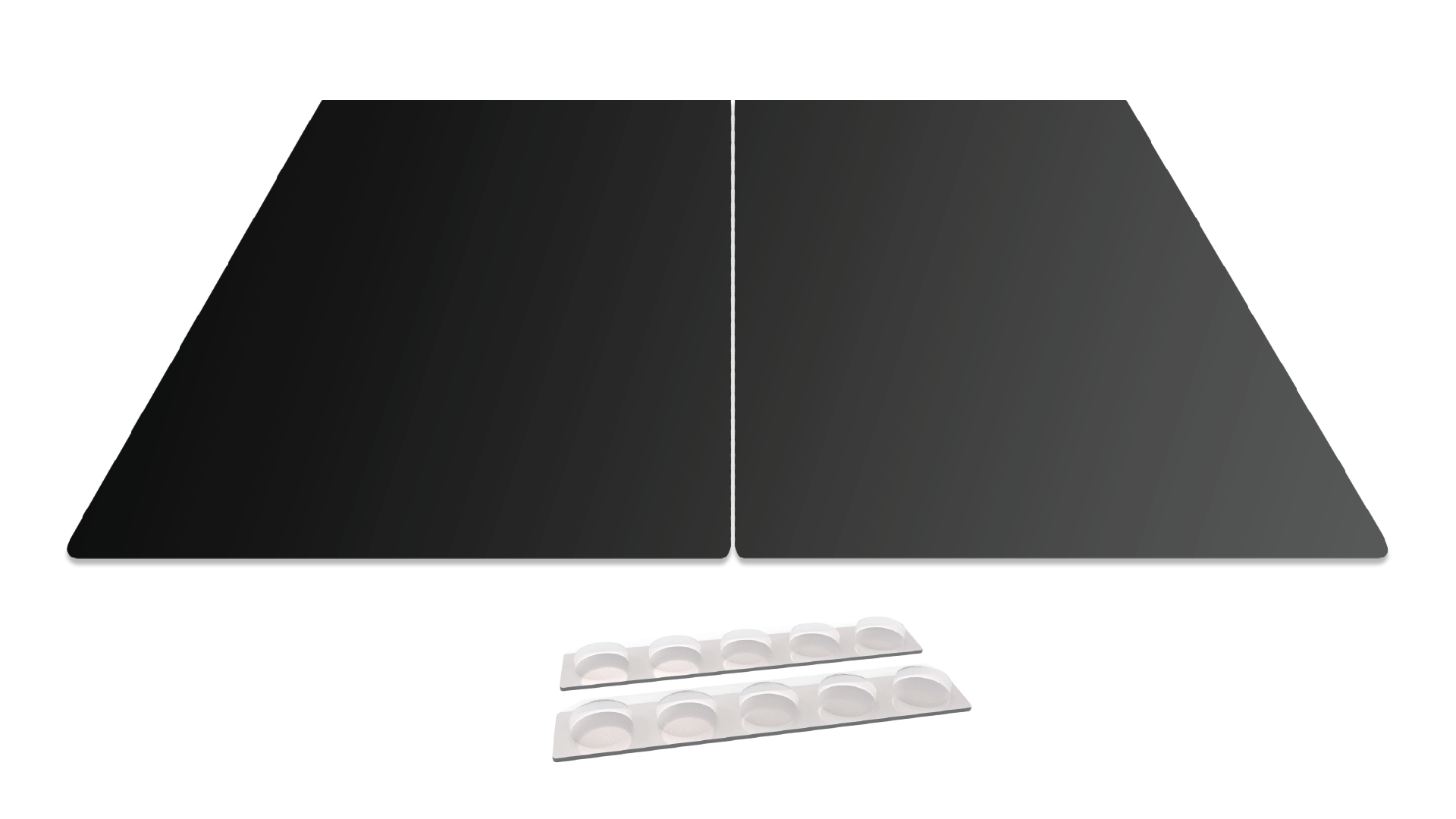 Do wykonania deski zostało wykorzystane szkło hartowane o grubości 4mm. Krawędzie szkłą są szlifowane, a narożniki zaokrąglone. Zapewnia to bezpieczeństwo w codziennym użytkowaniu. Dzięki szklanej powierzchni tablica jest bardzo łatwa w codziennej pielęgnacji.