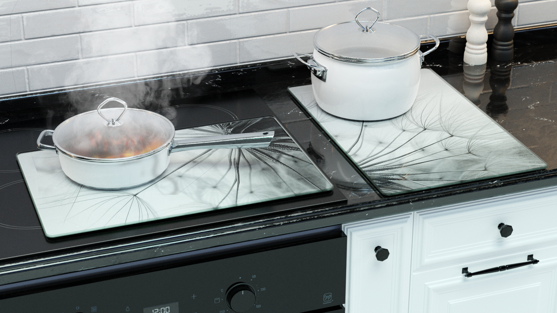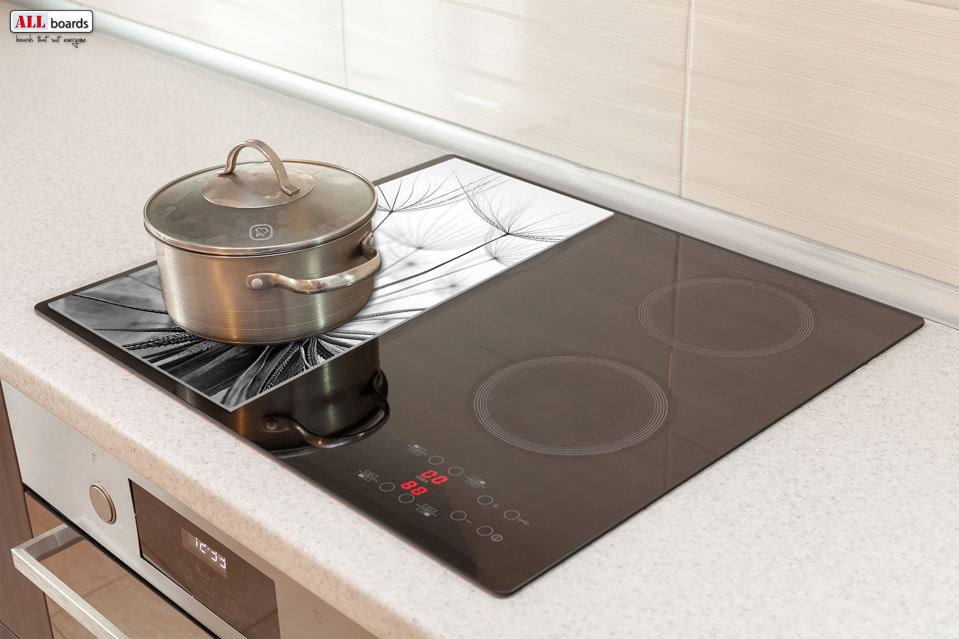 • płyta ochronna na kuchenkę - szklana płyta może służyć jako ochrona Twojej kuchenki lub płyty kuchennej. Przedłuża to jej żywotność i chroni przed uszkodzeniami