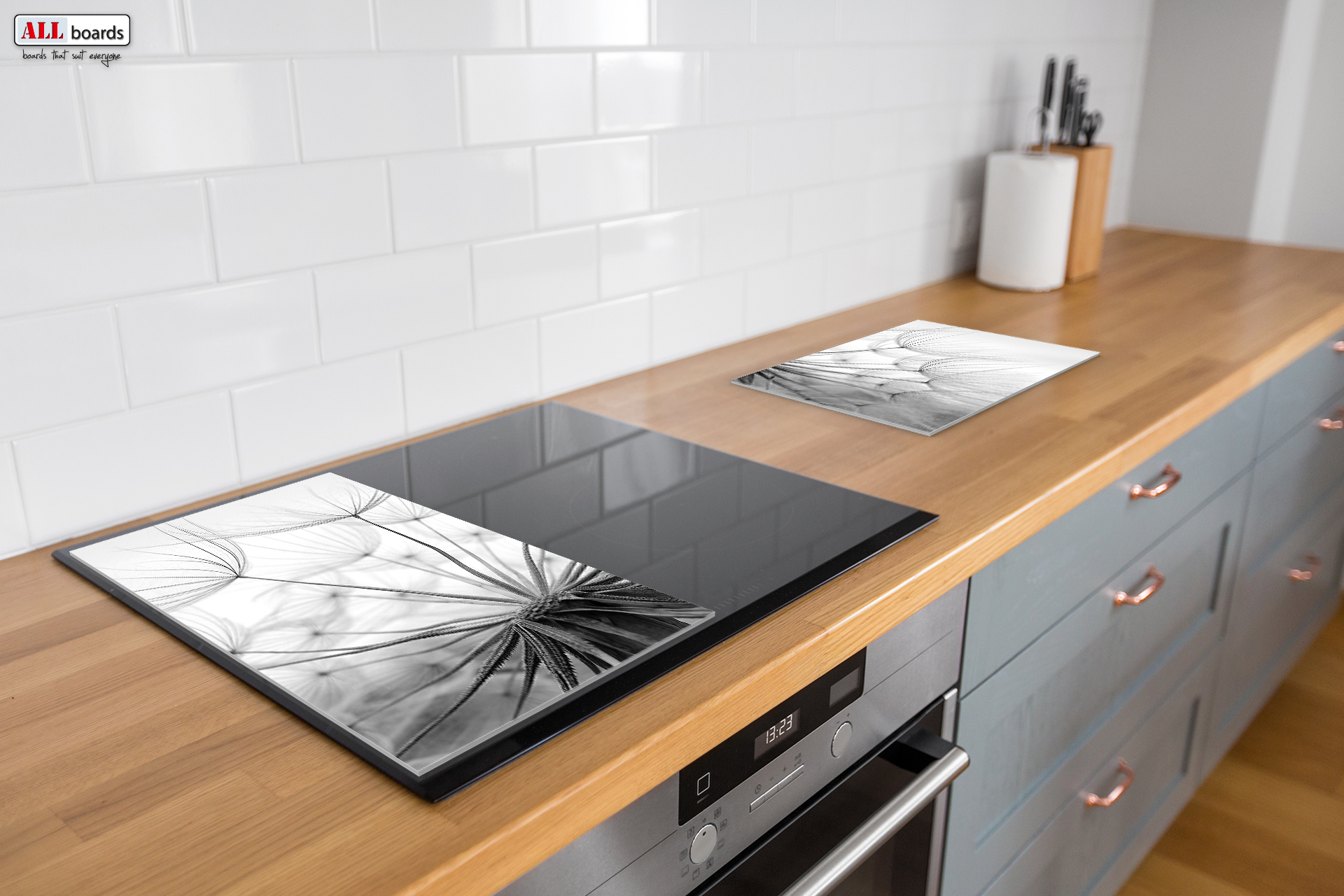 Szklana deska do krojenia DMUCHAWIEC DMUCHAWCE MNISZEK 2 sztuki 30x52cm deska kuchenna płyta ochronna taca szklana