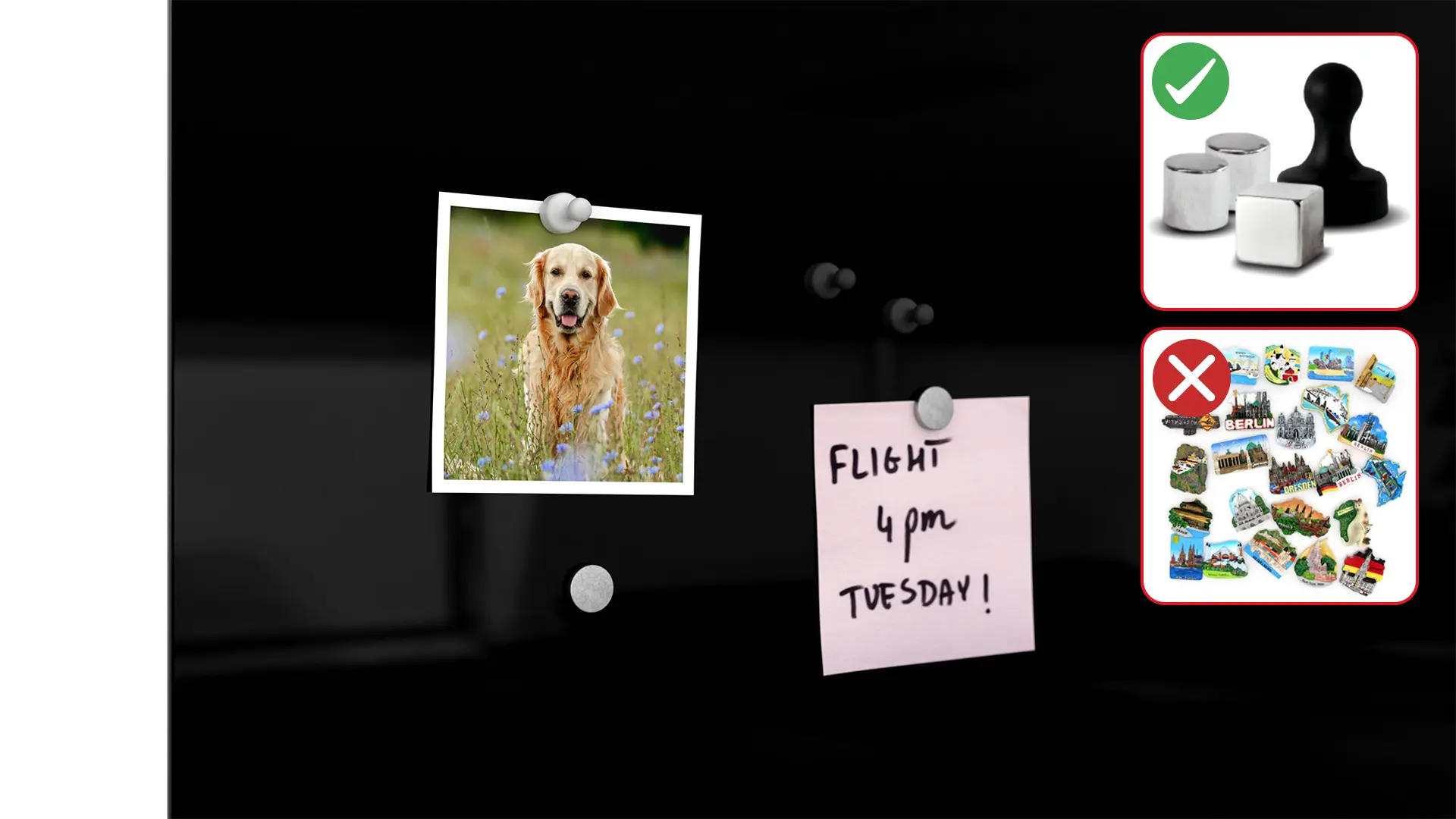 • SUCHOŚCIERALNA I MAGNETYCZNA — po tablicy można pisać markerami każdego rodzaju oraz przyczepiać do niej za pomocą magnesów neodymowych ulubione zdjęcia czy karteczki z ważnymi informacjami.