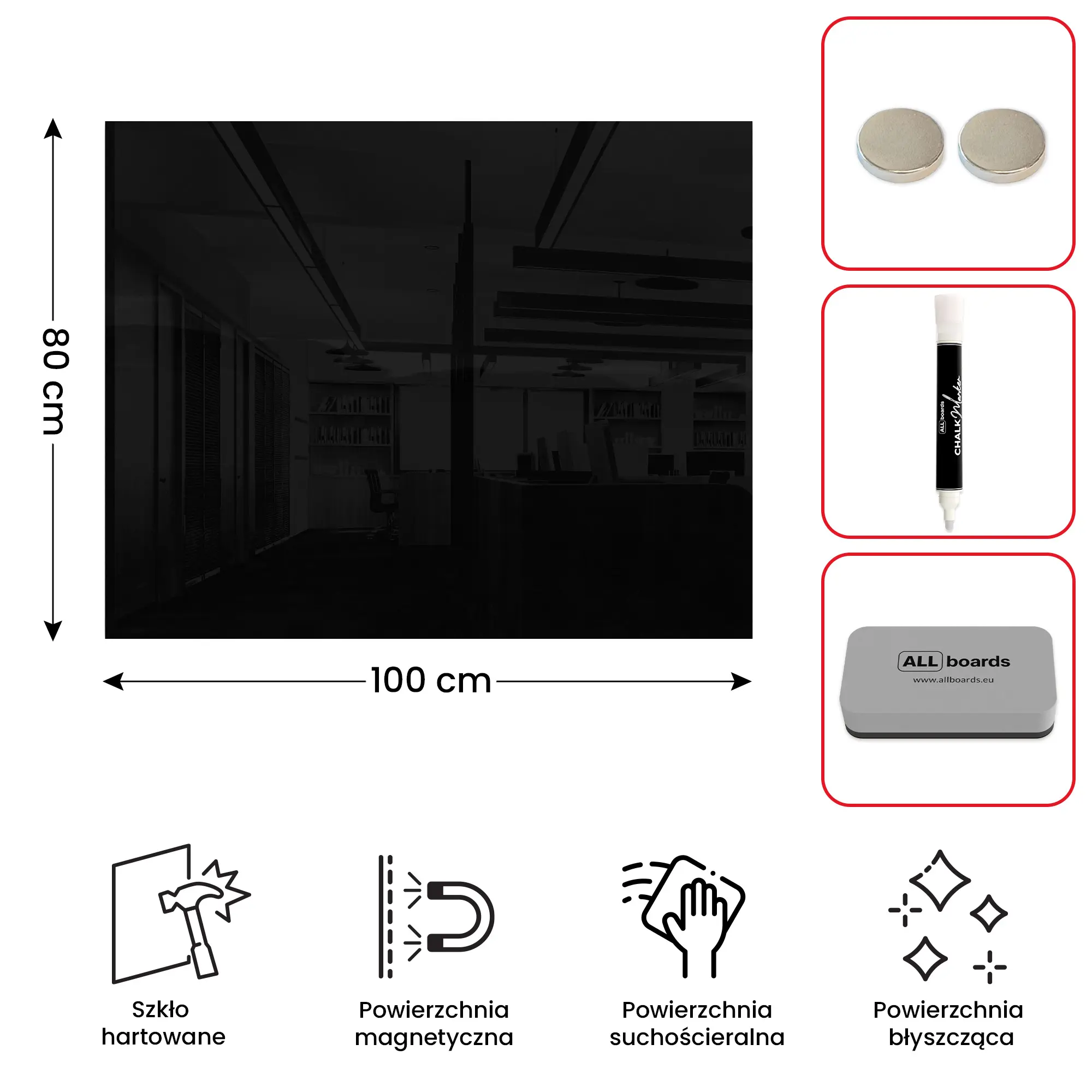 Szklana tablica magnetyczna 100x80 cm CZARNA + GRATIS