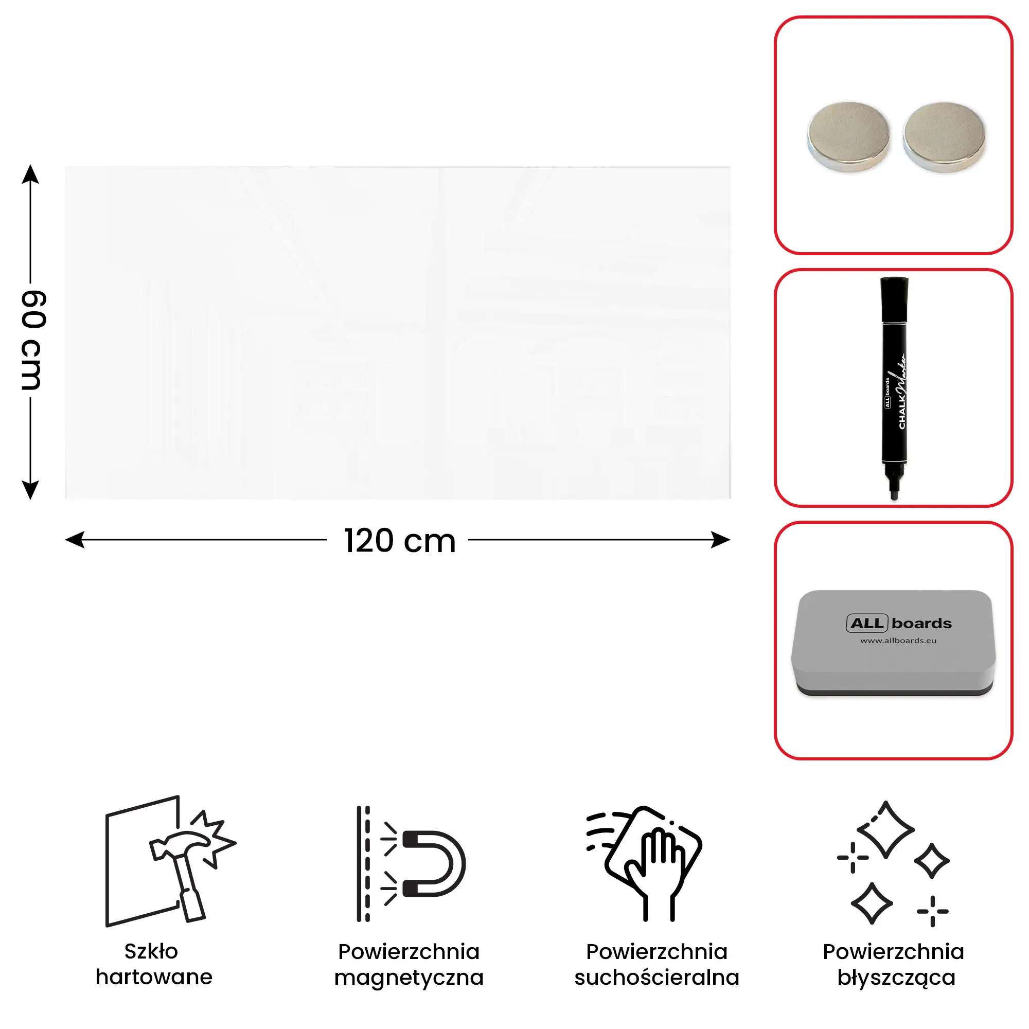 Szklana tablica magnetyczna 120x60 cm PREMIUM SUPERWHITE + GRATIS