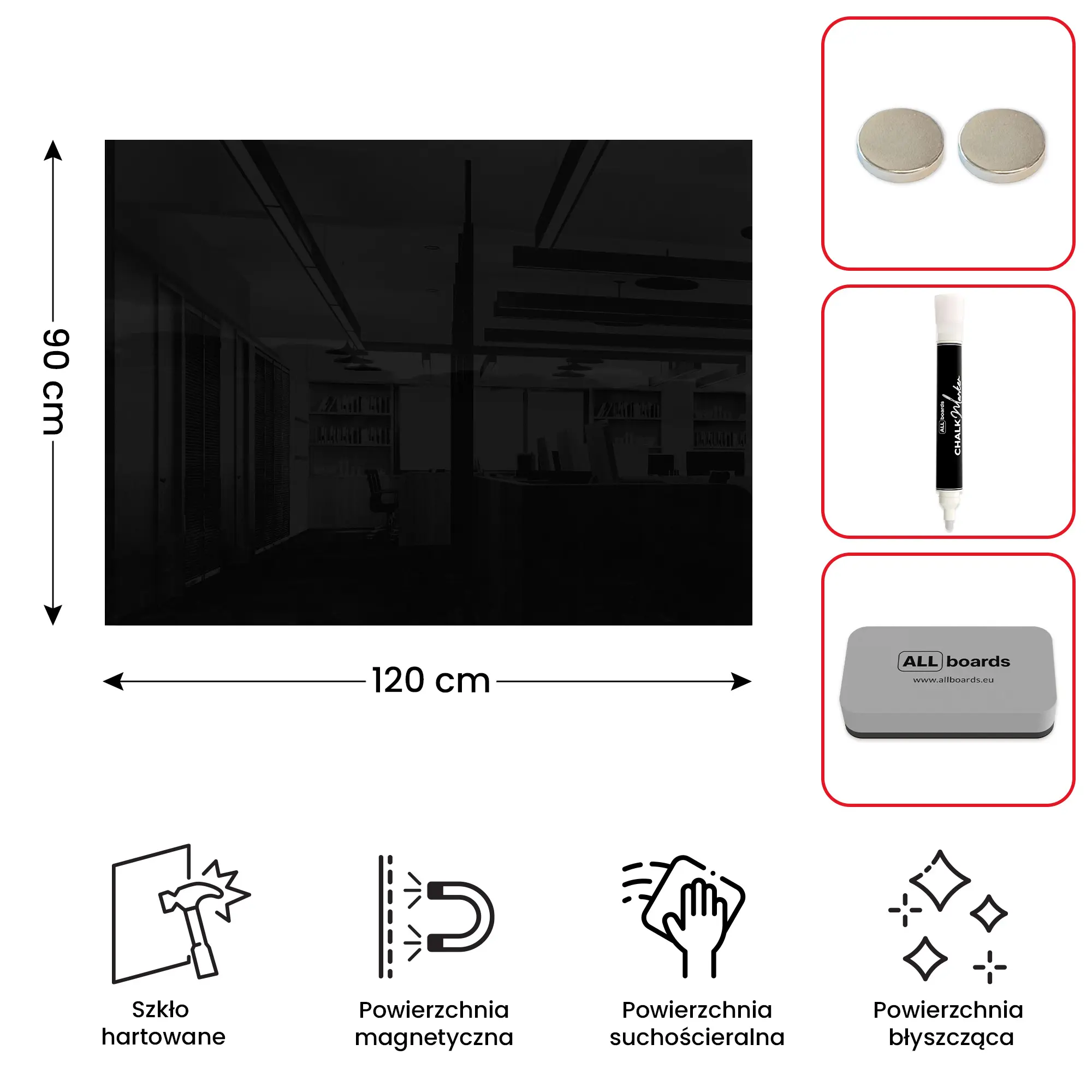 Szklana tablica magnetyczna 120x90 cm CZARNA + GRATIS