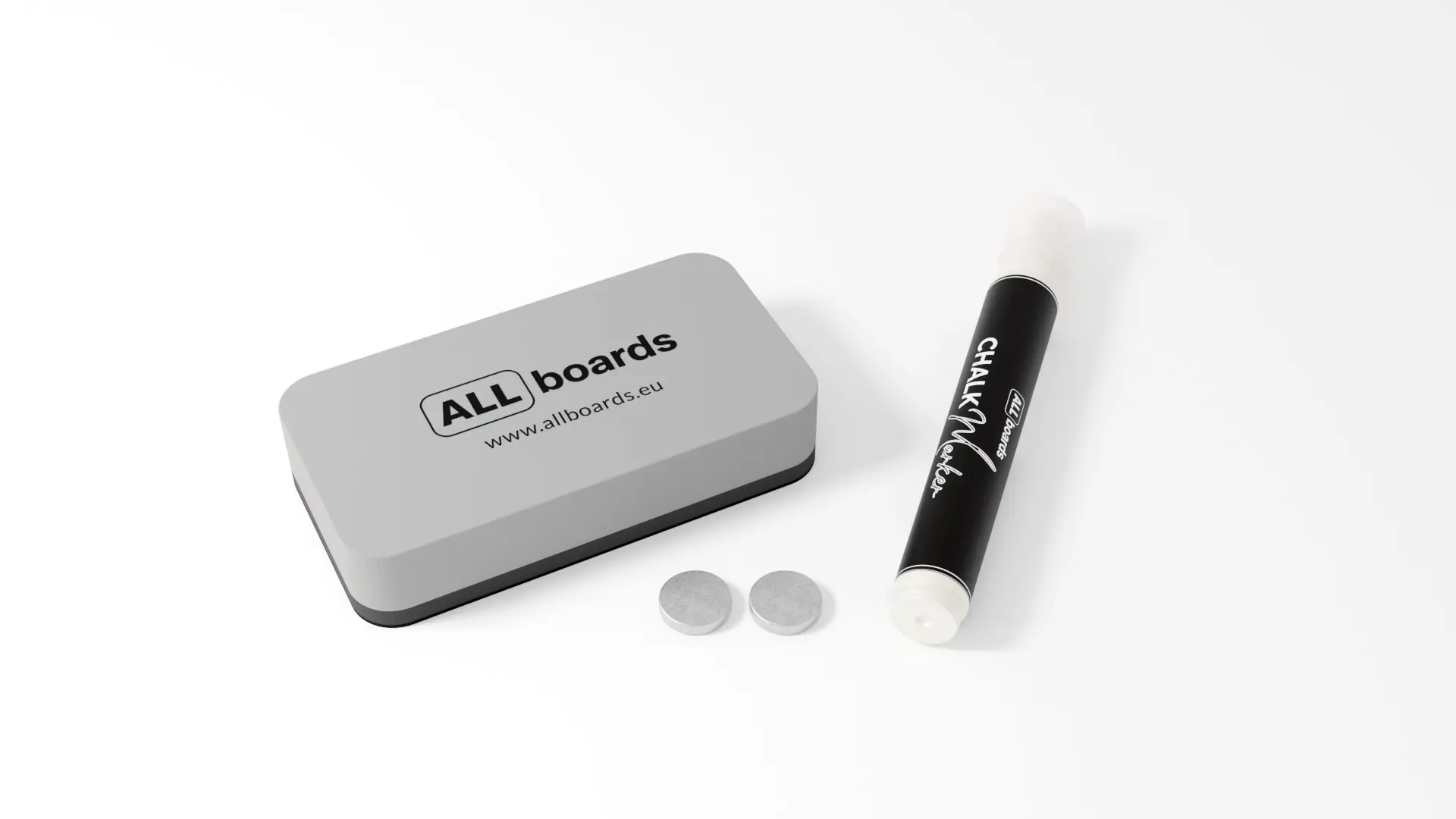 • GRATIS — w zestawie z tablicą znajdują się: marker kredowy, gąbka magnetyczna oraz 2 magnesy neodymowe.
