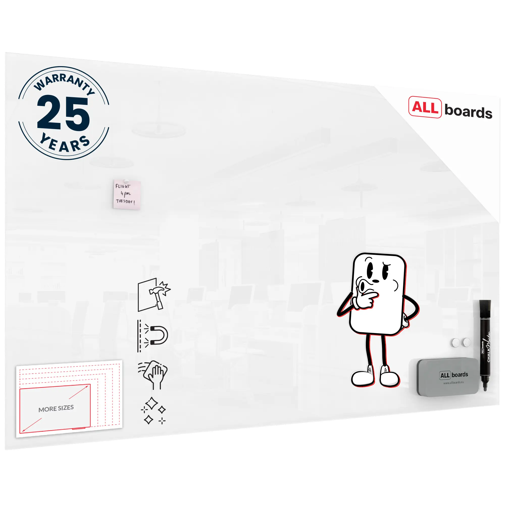 Szklana tablica magnetyczna 200x120 cm PREMIUM SUPERWHITE + GRATIS