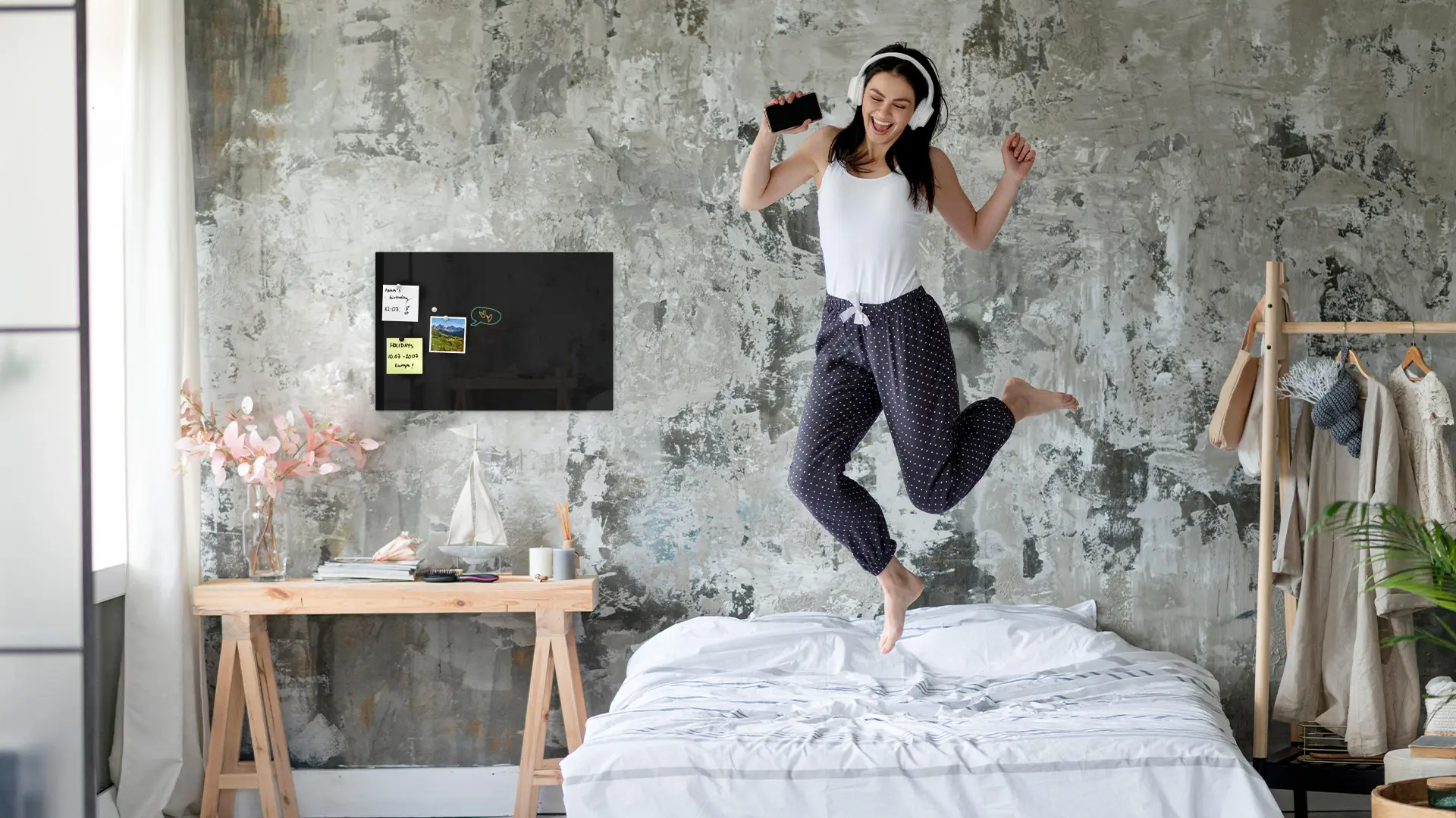 - SUCHOŚCIERALNA I MAGNETYCZNA — po tablicy można pisać markerami każdego rodzaju oraz przyczepiać do niej za pomocą magnesów neodymowych ulubione zdjęcia czy karteczki z ważnymi informacjami.