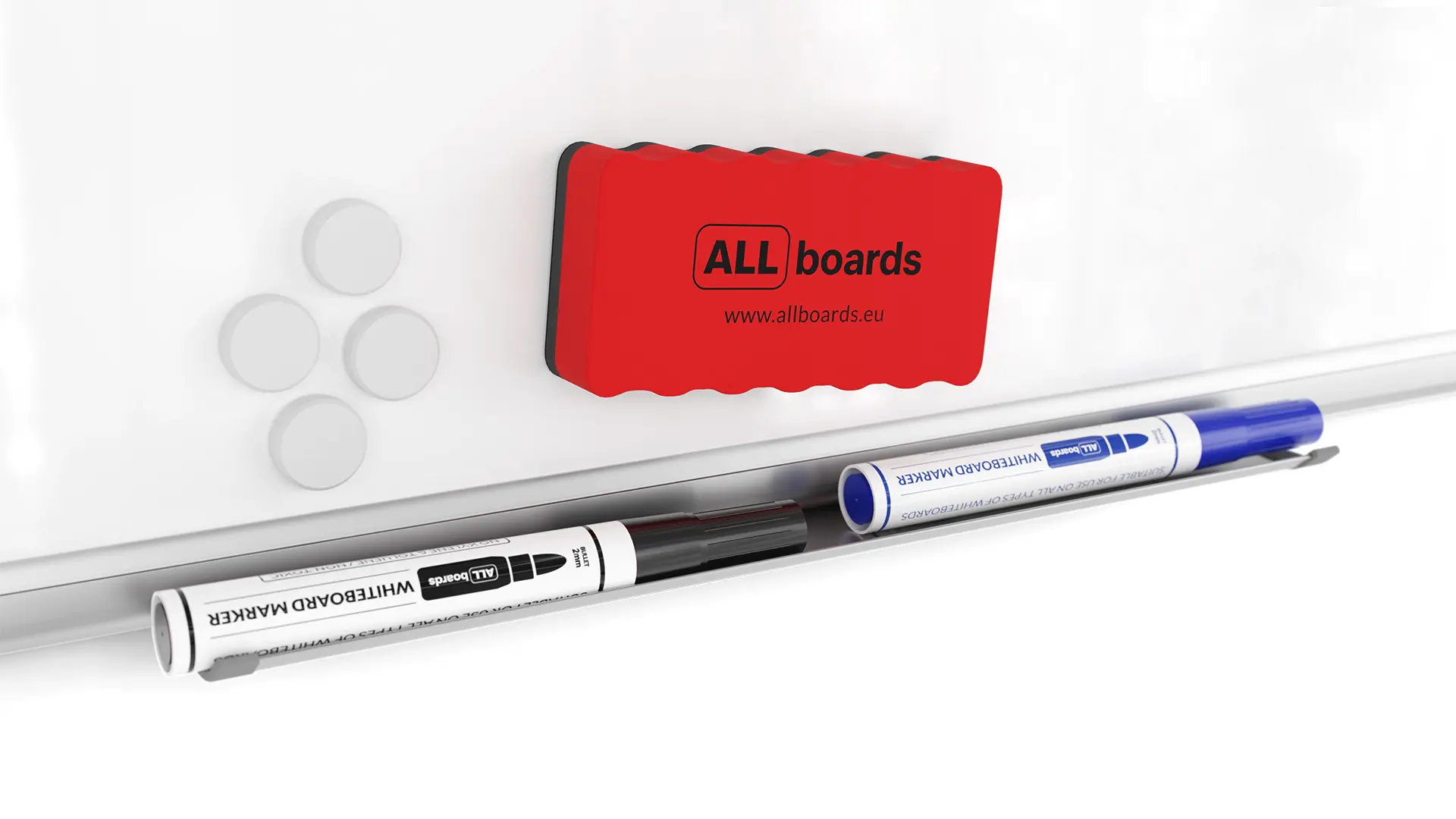 Biała magnetyczna tablica ALLboards wykonana jest z sztywnej i wytrzymałej blachy, dzięki której tablica zyskuje właściwości magnetyczne. Blacha pokryta jest ceramiczną warstwą, który nadaje tablicy biały kolor oraz gładką i lśniącą powierzchnię. Dzięki zastosowaniu ceramicznej powłoki, tablica jest zdecydowanie wytrzymalsza od standardowej tablicy. Można ją wykorzystać w miejscach, gdzie będzie często i intensywnie eksploatowana. Do tablicy możemy przypinać każdego rodzaju magnesy: neodymowe, turystyczne, klasyczne, ozdobne. Znakomicie nadaje się również do wykorzystania z ramkami magnetycznymi oraz innymi magnetycznymi akcesoriami.