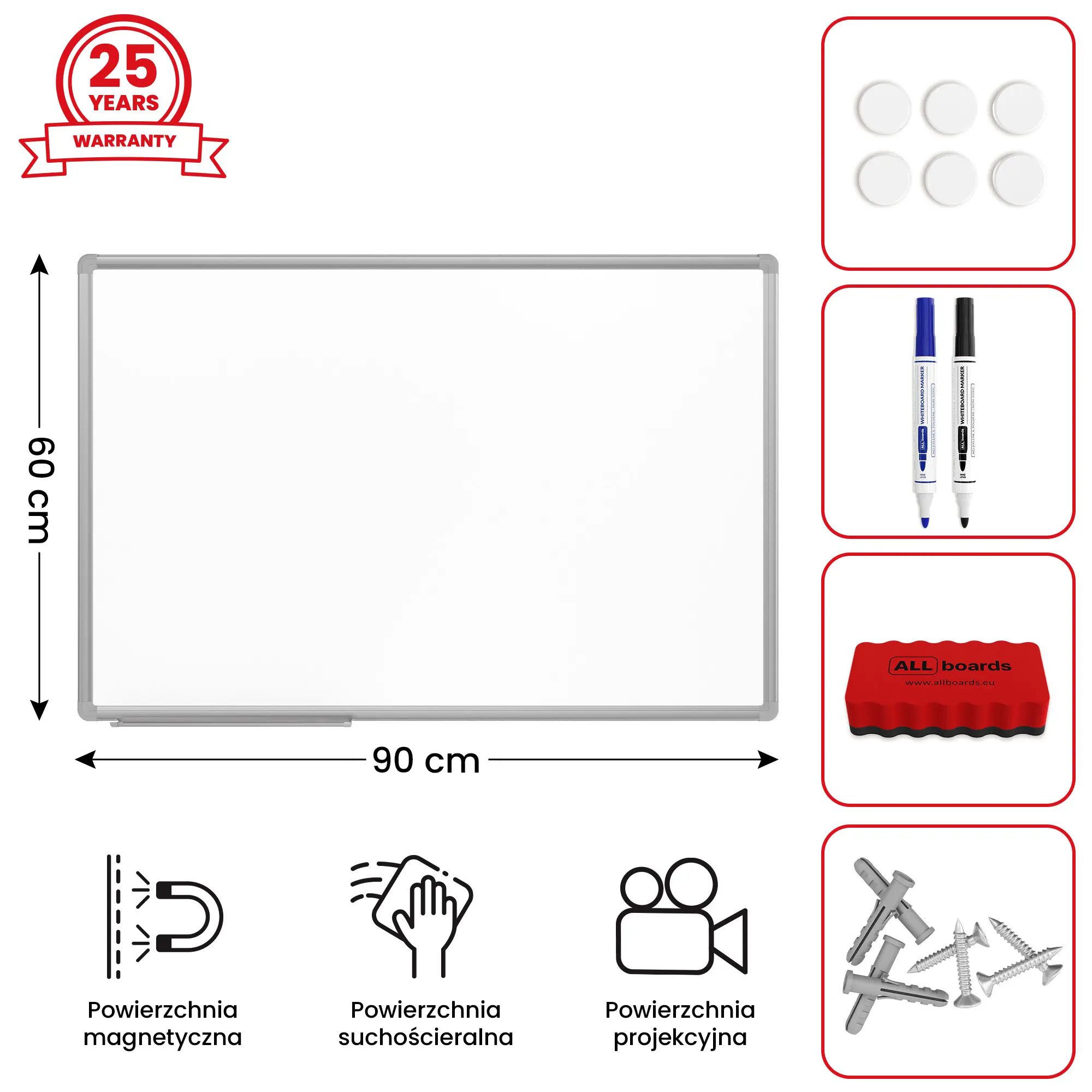 Tablica CERAMICZNA porcelanowa suchościeralna magnetyczna biała 90x60 cm P3