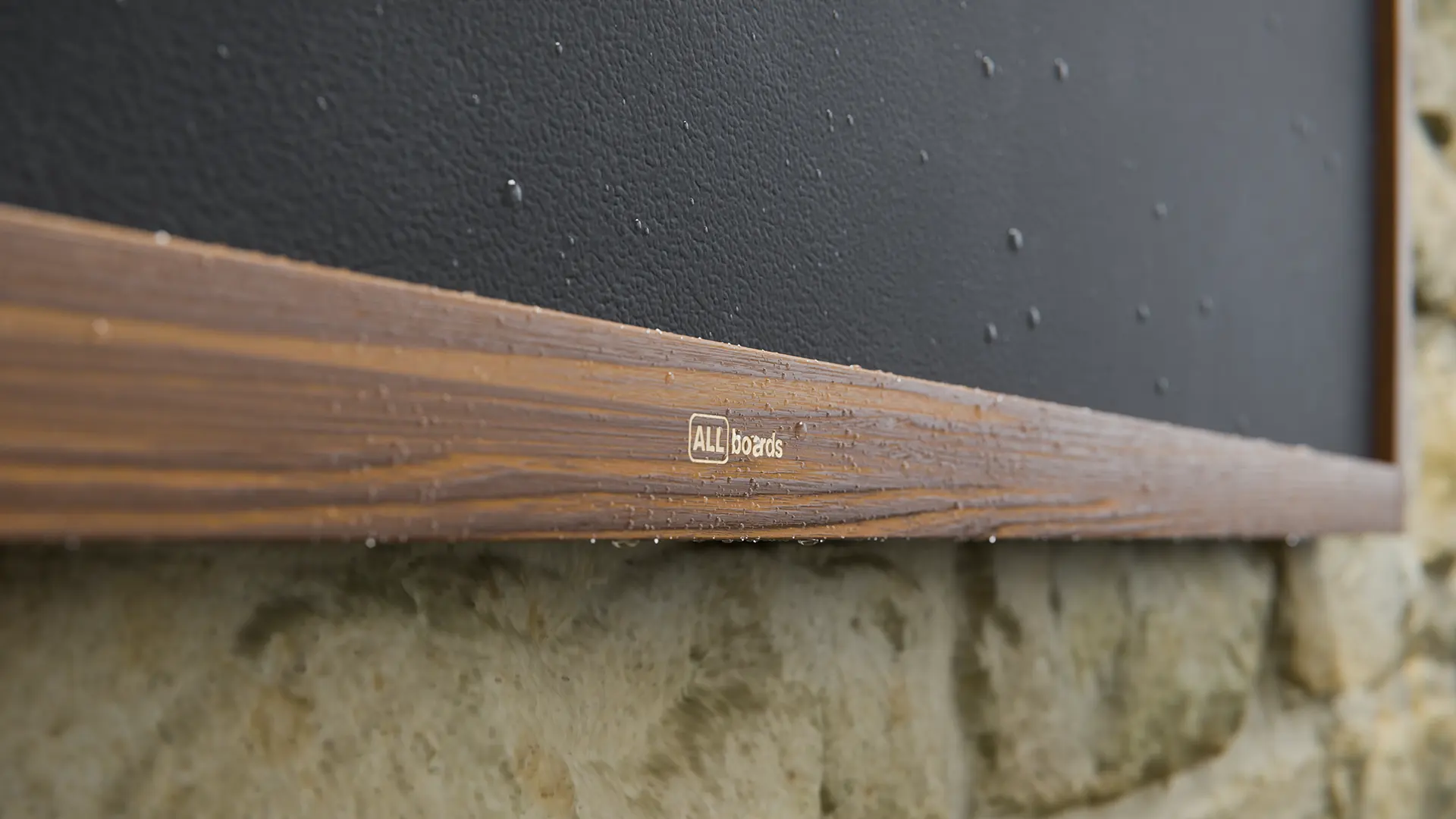 - RAMA - tablica wykonana jest z wysokiej jakości drewna. Zostało ono polakierowane, co zapewnia mu elegancki brązowy kolor oraz wodoodporność, zachowując przy tym naturalną strukturę drewna i układ słojów.