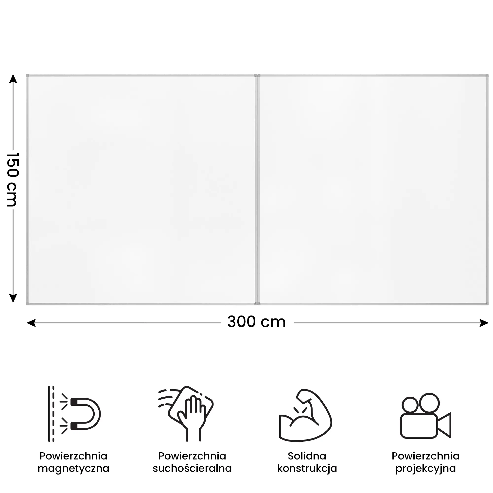 Tablica ceramiczna projekcyjna P4 300x150 cm (2x 150x150 cm) MEGAboards magnetyczna, suchościeralna w aluminiowej ramie