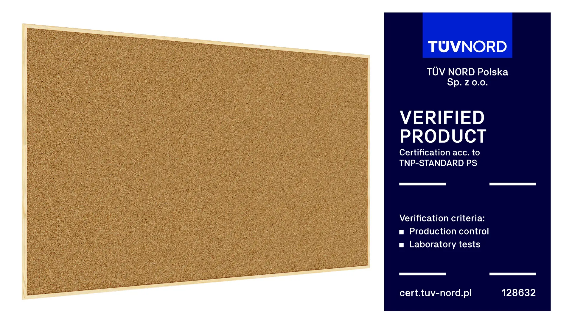 Powierzchnia tablicy została wykonana z najwyższej jakości naturalnego korka, poddanego obróbce. Dzięki temu otrzymuje odpowiednią gęstość oraz gładkość. Korek ma 1 mm grubości i jest umieszczony na płycie pilśniowej, która zapewnia sztywność całej konstrukcji.
