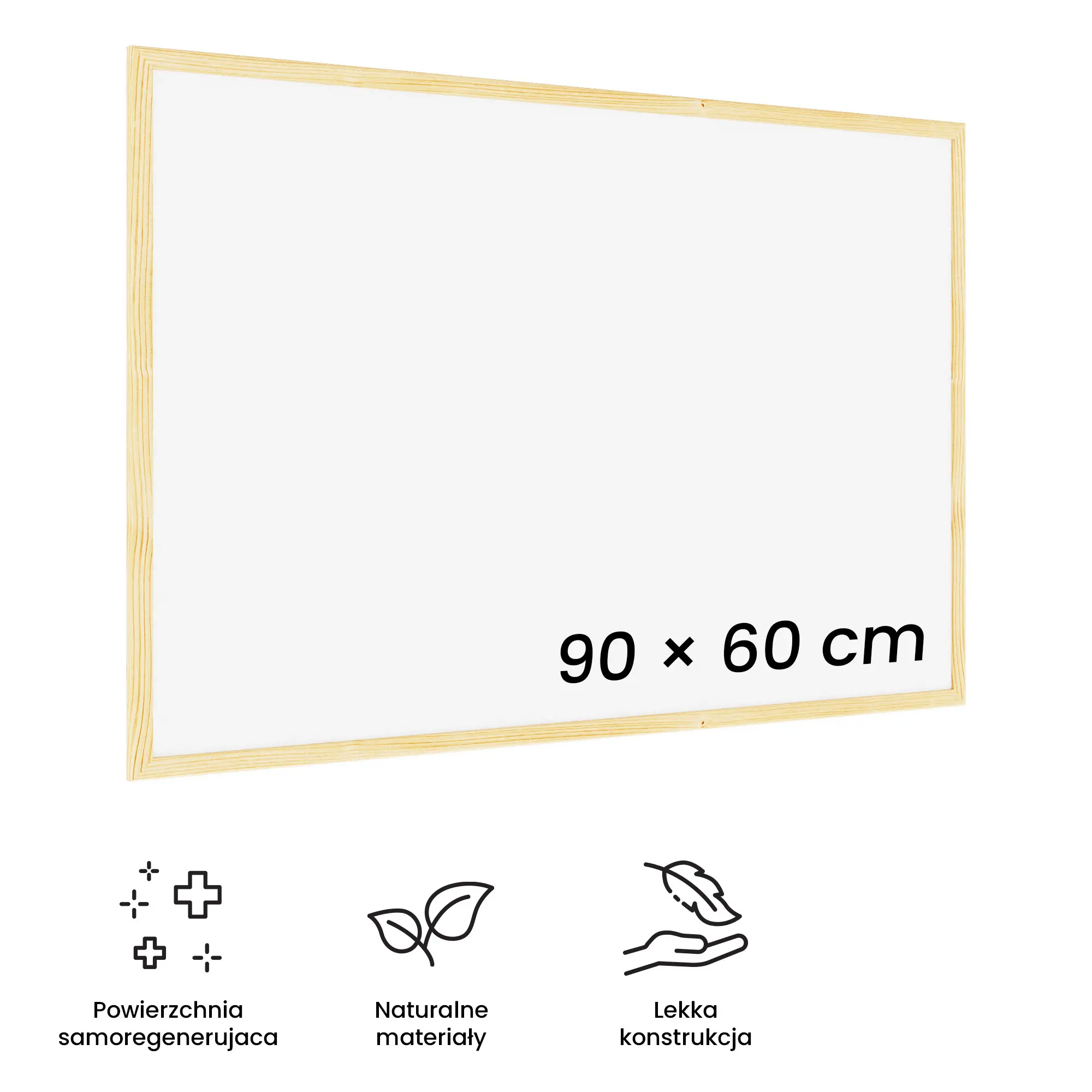 - DREWNIANA RAMA - estetyczna, sosnowa rama, zapewnia trwałość, stabilność i elegancki wygląd tablicy.