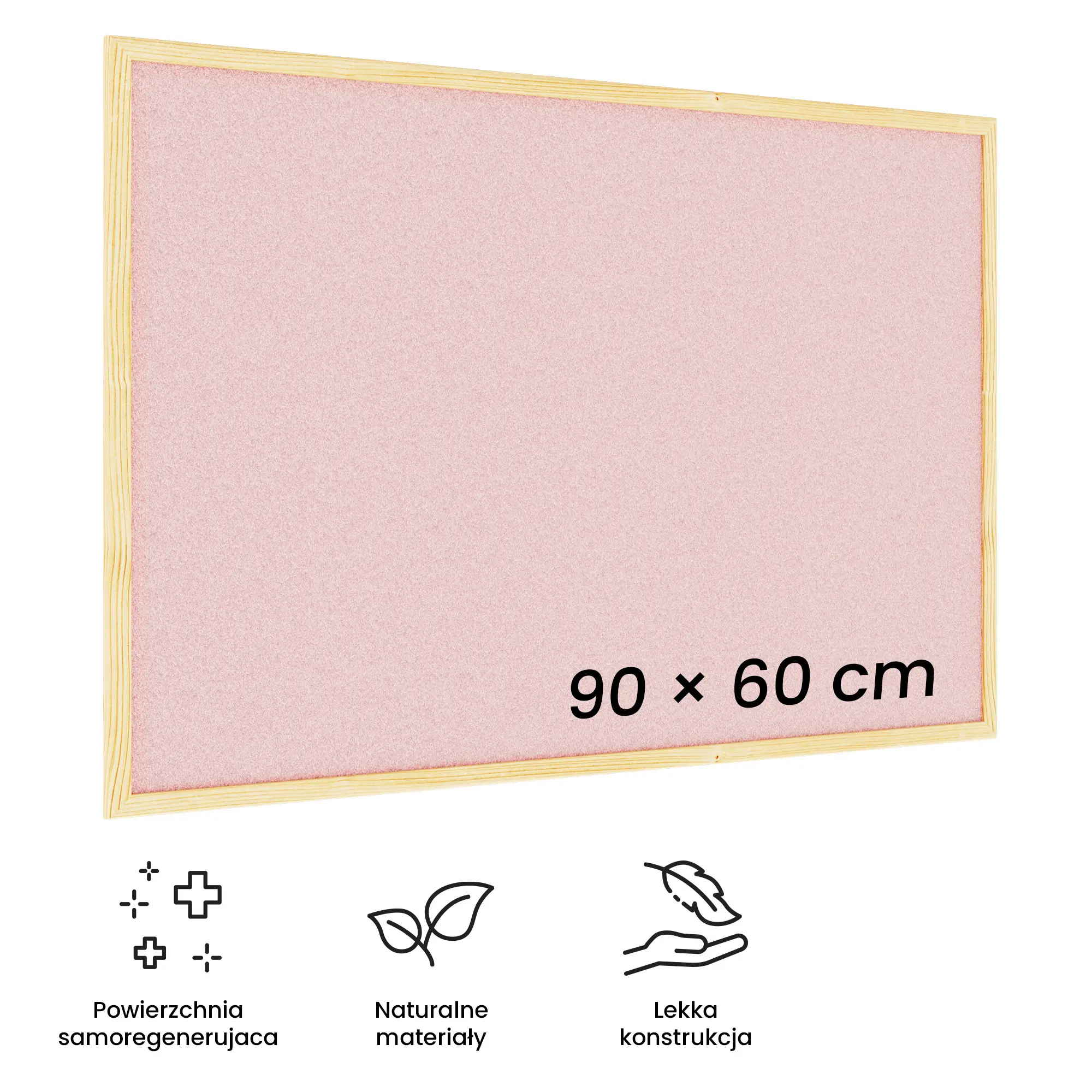 Tablica korkowa pastelowa różowa (rama drewniana) 90x60cm