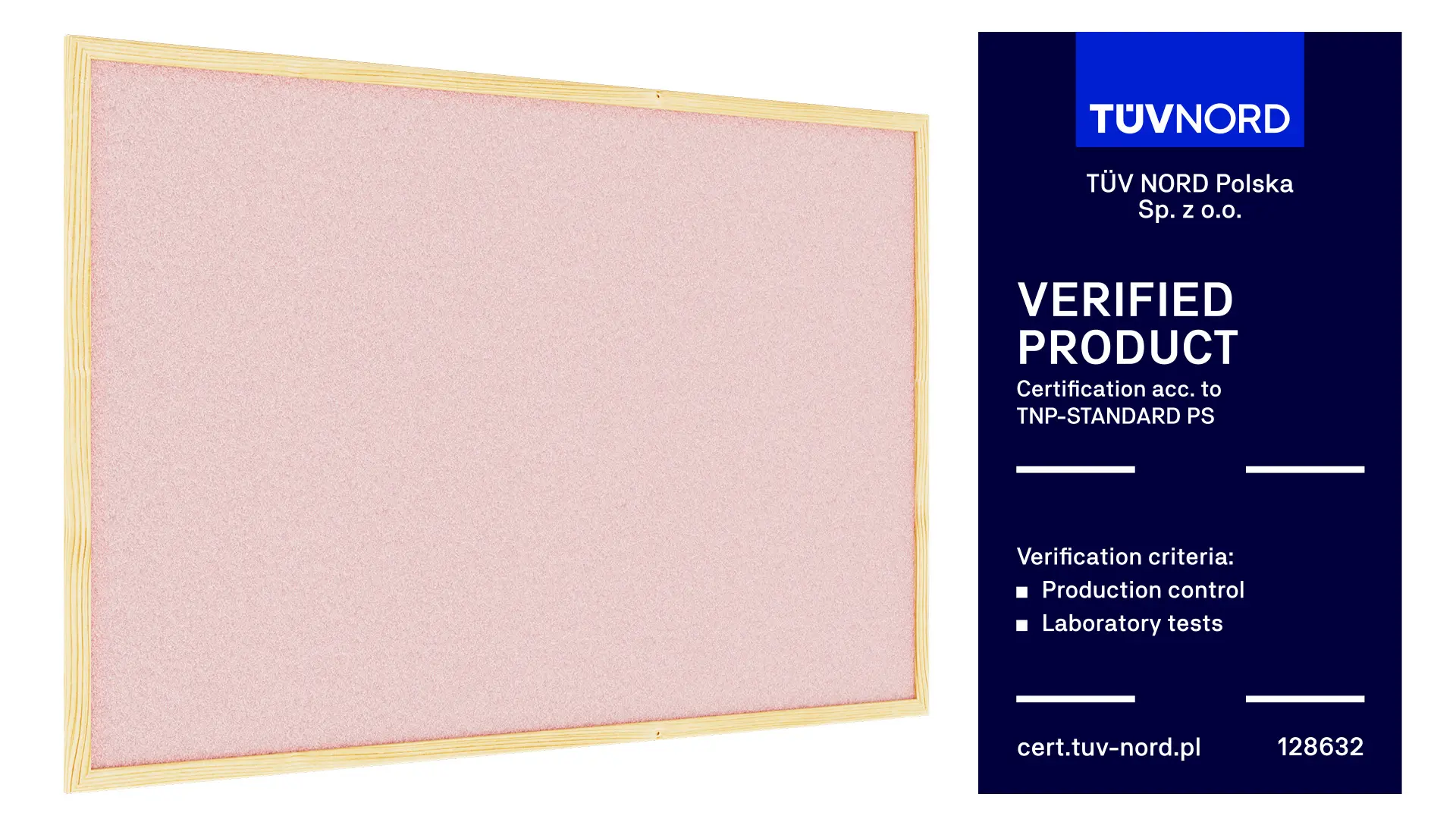 Powierzchnia tablicy została wykonana z najwyższej jakości naturalnego korka, poddanego obróbce. Dzięki niej korek otrzymuje odpowiednią gęstość oraz gładkość