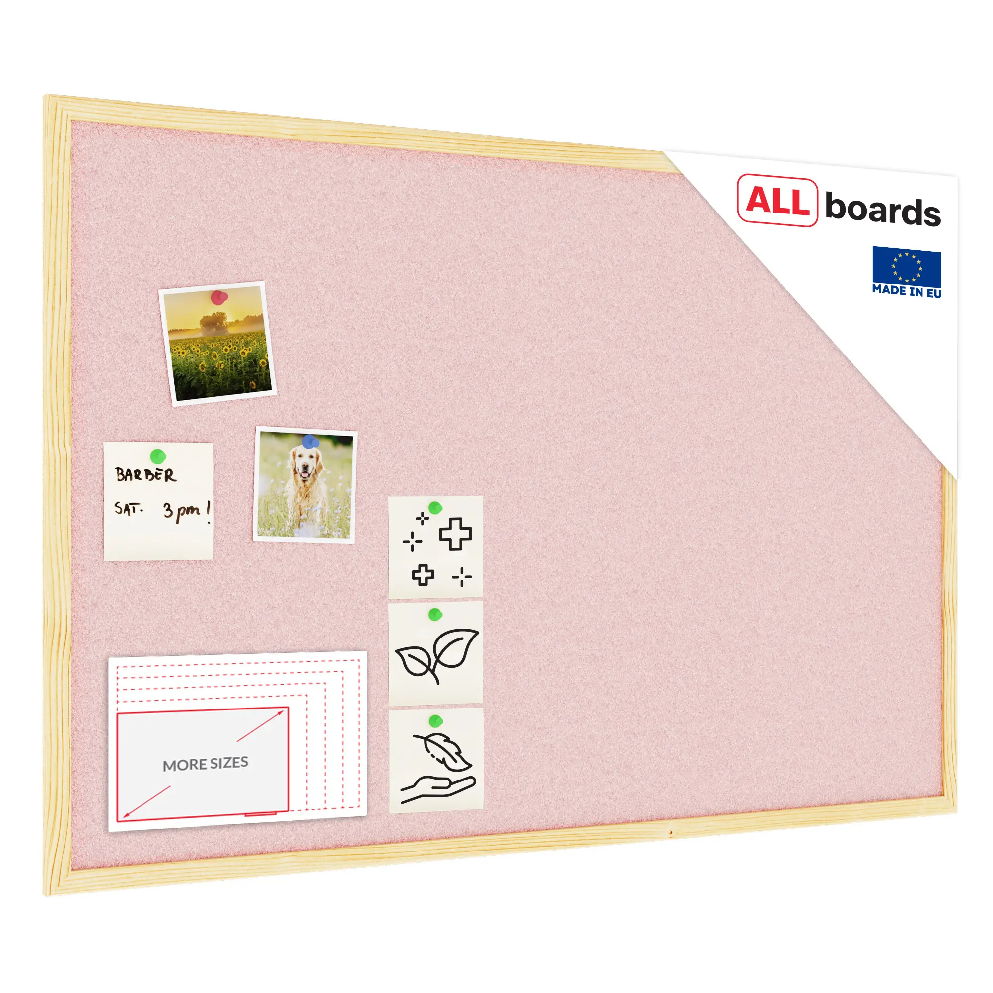 Tablica korkowa pastelowy różowy kolor korka (rama drewniana) 90x60 cm