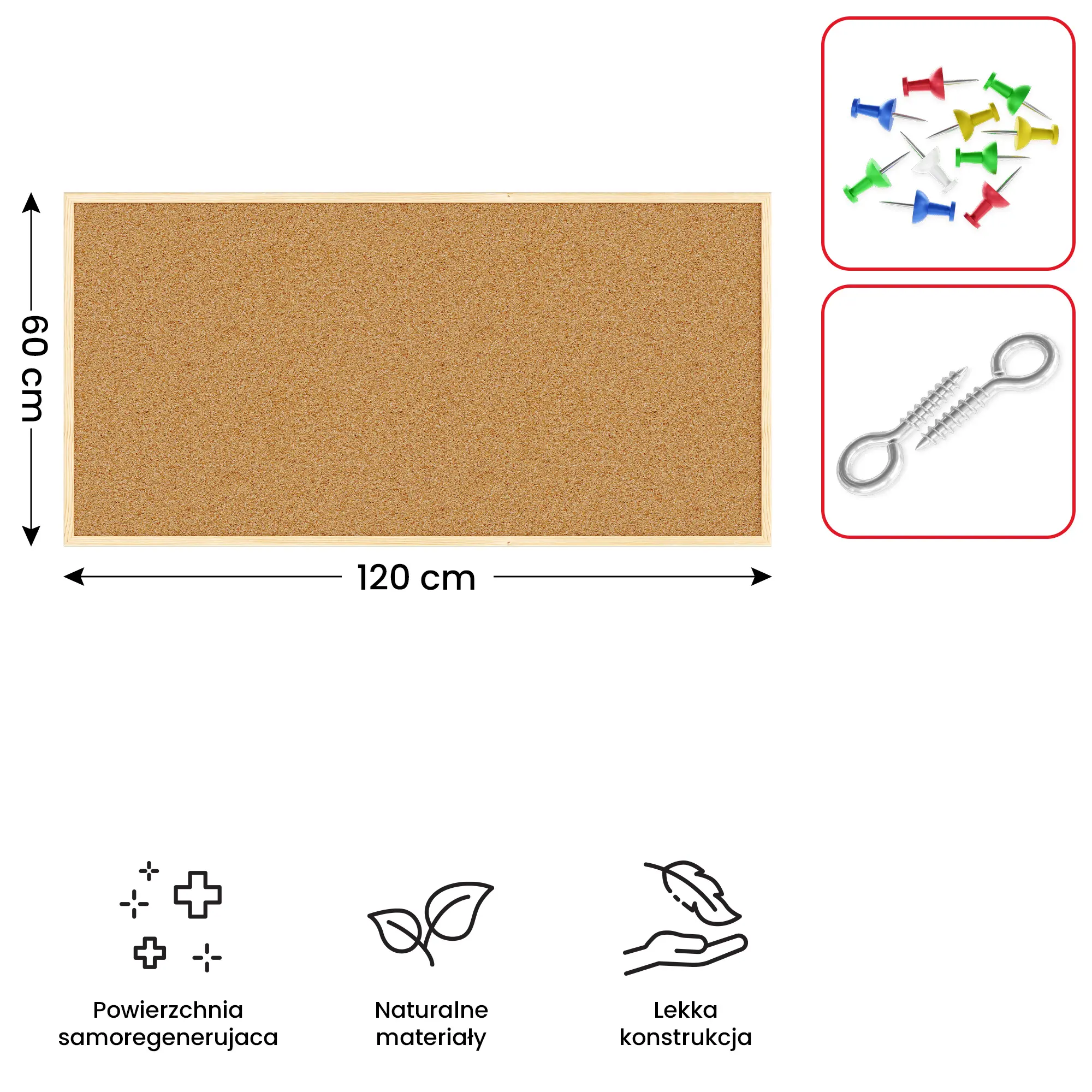 Tablica korkowa (rama drewniana) 120x60 cm + GRATIS