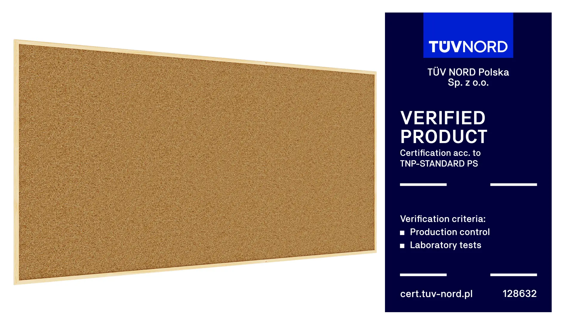 Powierzchnia tablicy została wykonana z najwyższej jakości naturalnego korka, poddanego obróbce. Dzięki temu otrzymuje odpowiednią gęstość oraz gładkość. Korek ma 1 mm grubości i jest umieszczony na płycie pilśniowej, która zapewnia sztywność całej konstrukcji.