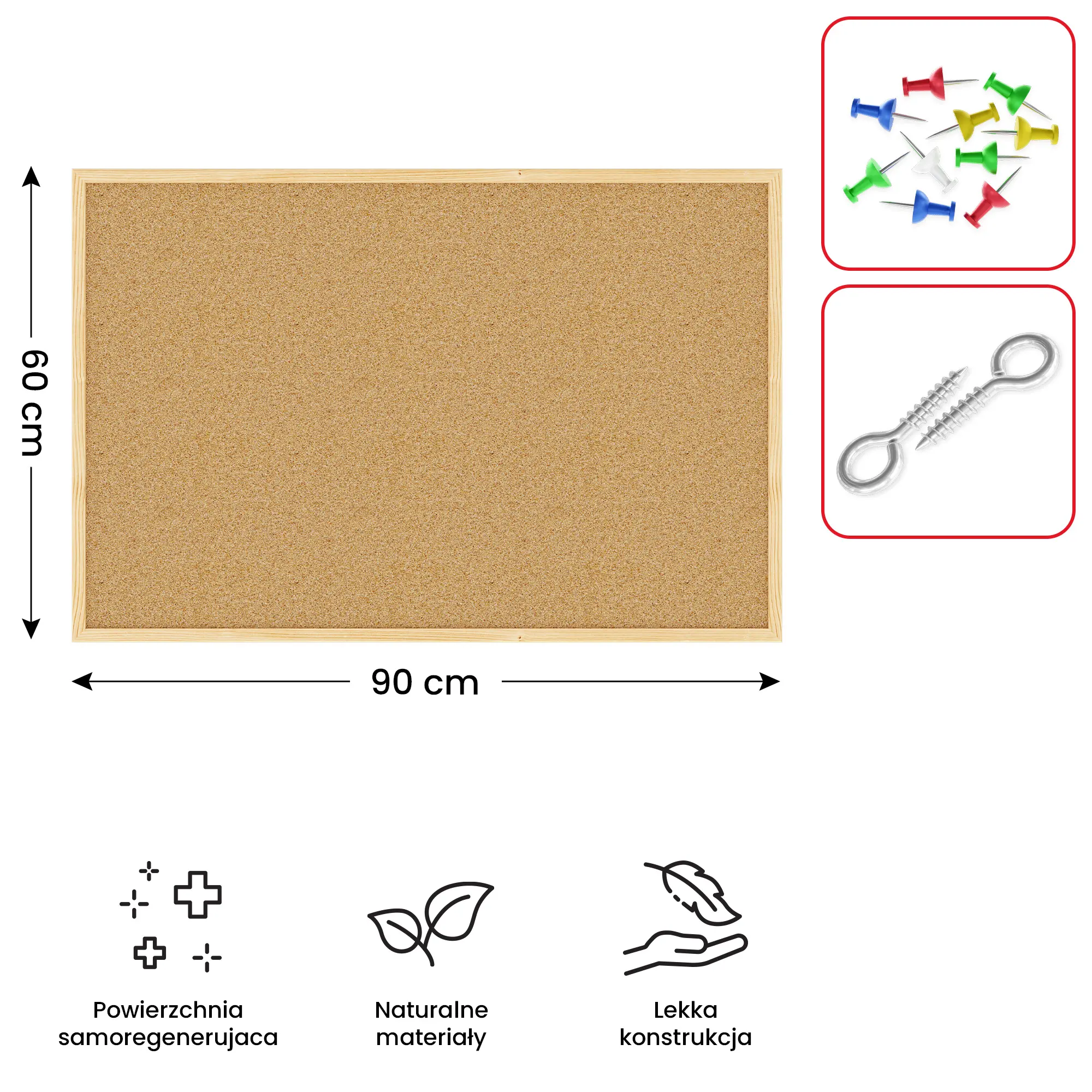 Tablica korkowa (rama drewniana) 90x60 cm + GRATIS