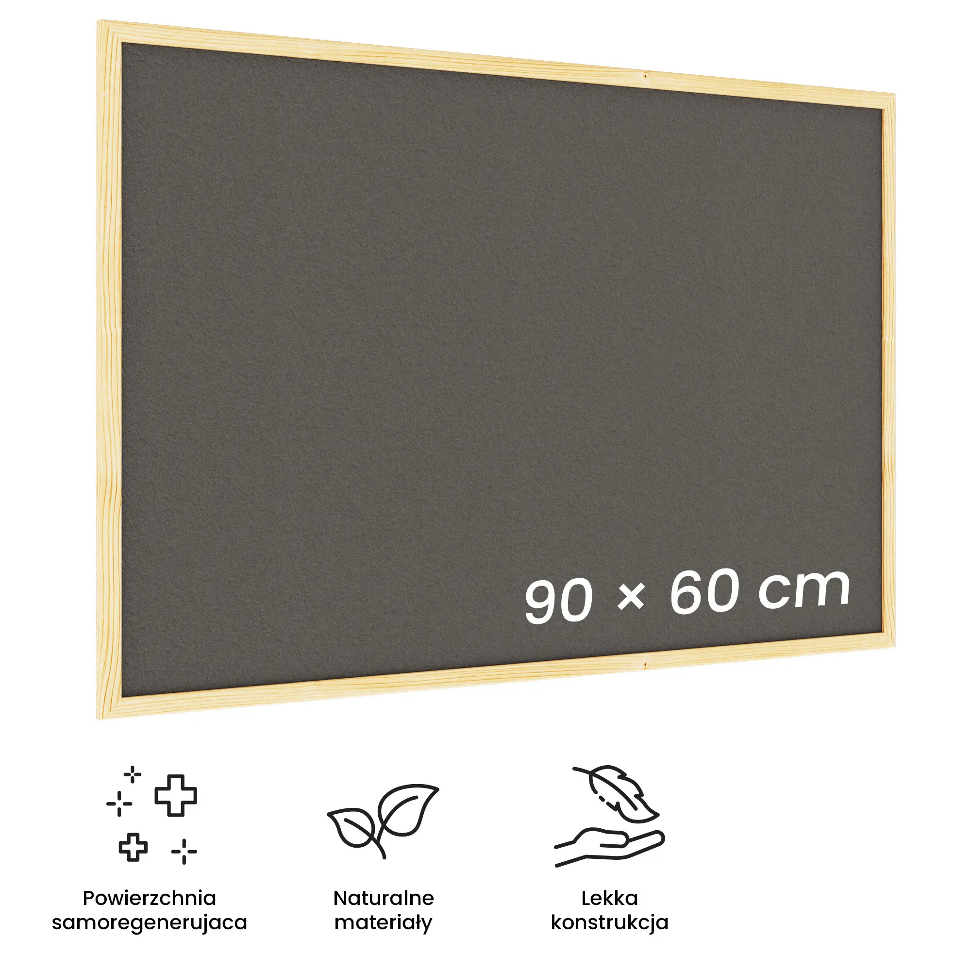 Tablica korkowa szara (rama drewniana) 90x60cm