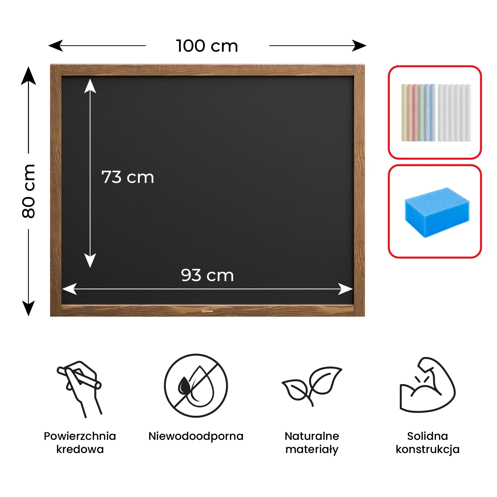 Tablica kredowa czarna 100x80 cm rama drewniana lakierowana