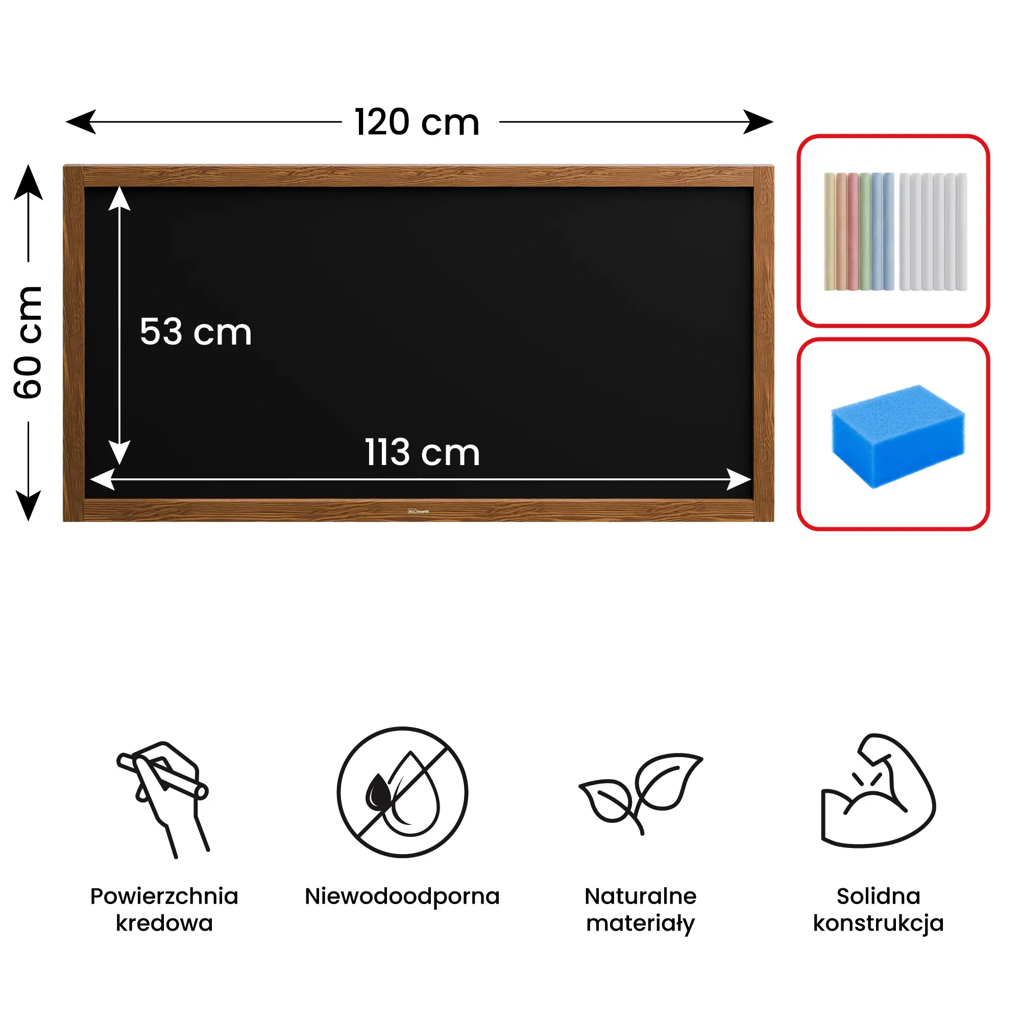 Tablica kredowa czarna 120x60 cm rama drewniana lakierowana + GRATIS