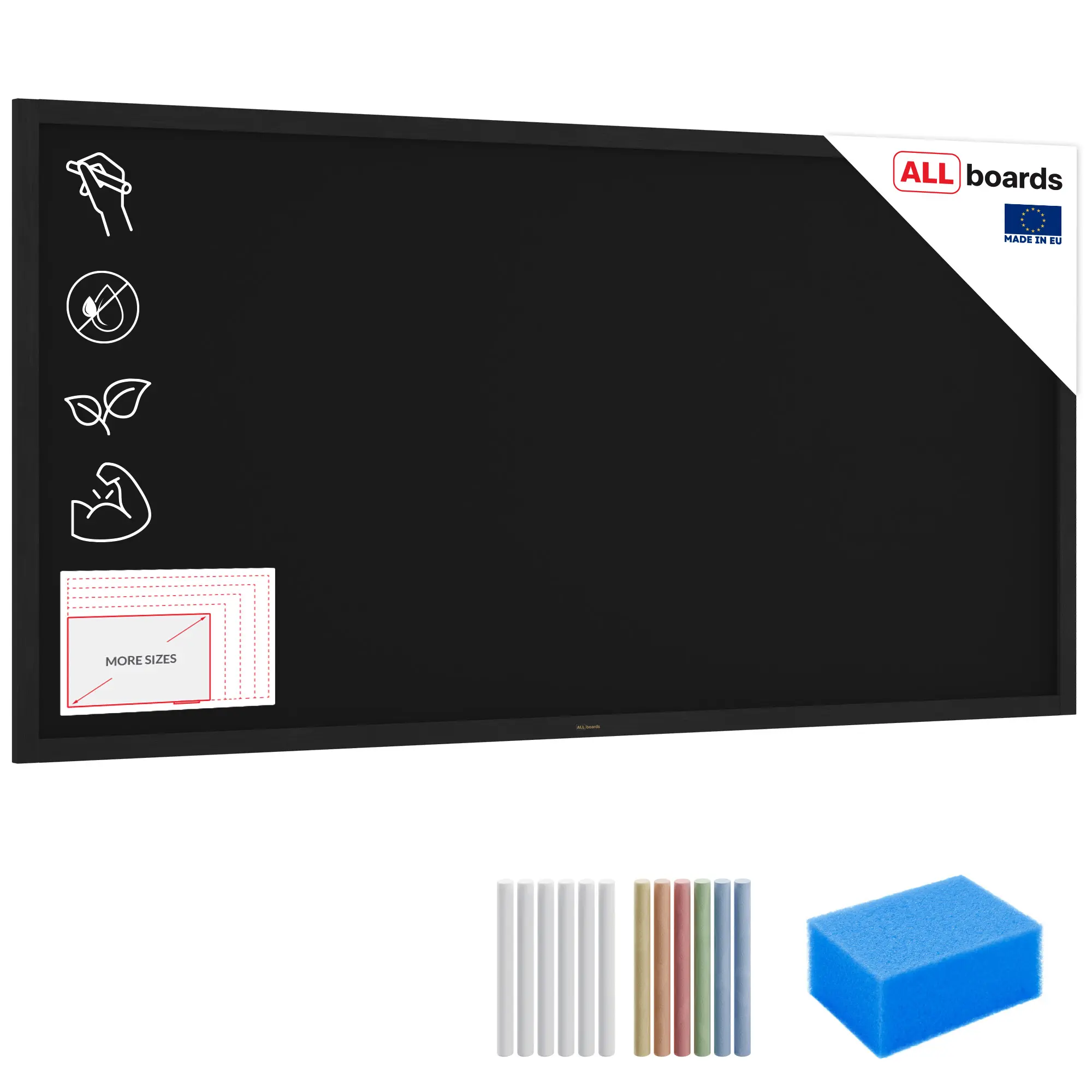• GRATIS - w zestawie znajduje się 12 sztuk kredy i gąbka do tablic kredowych, dzięki czemu tablicy można użyć od razu po wyjęciu z opakowania.