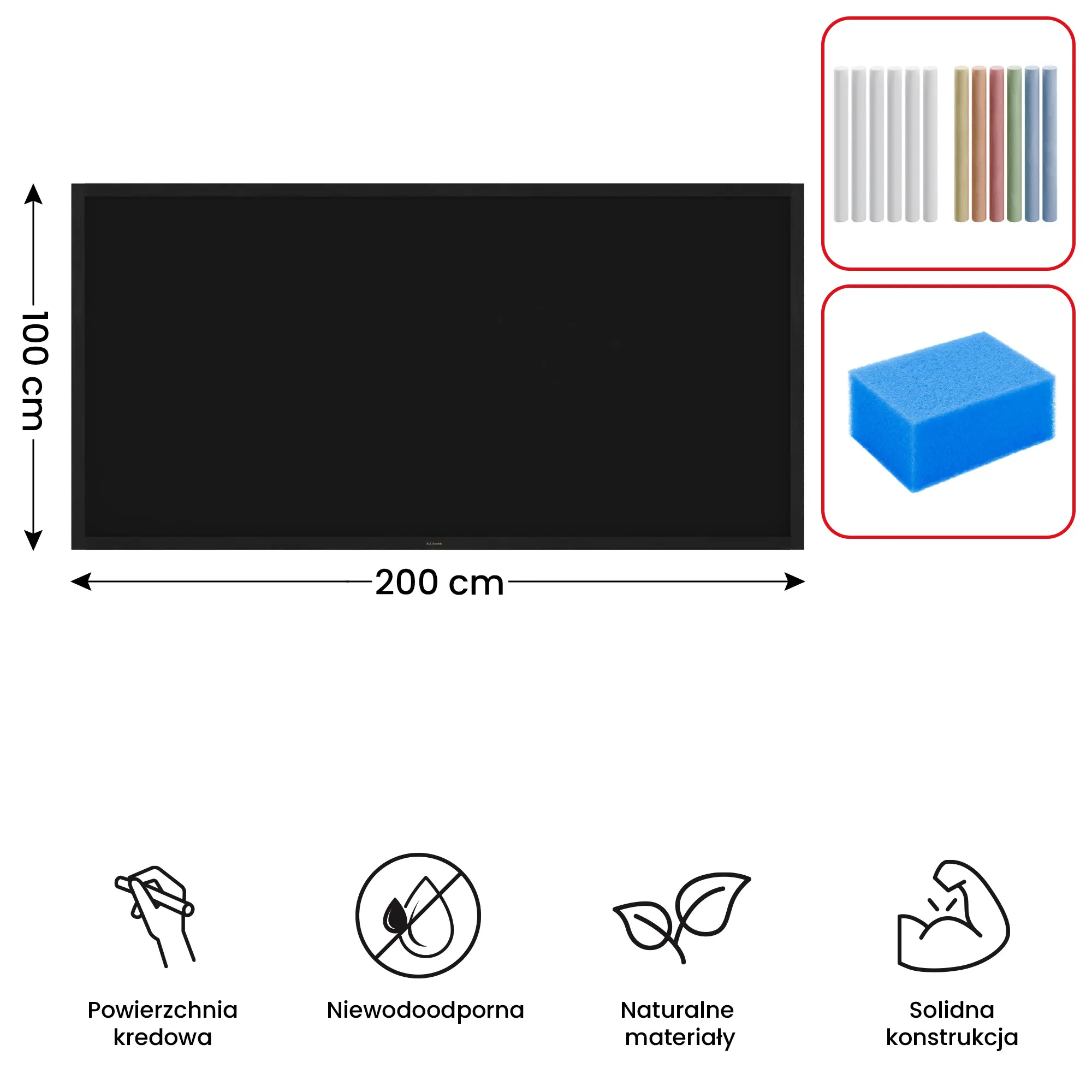 Tablica kredowa czarna 200x100 cm rama CZARNA drewniana lakierowana + GRATIS