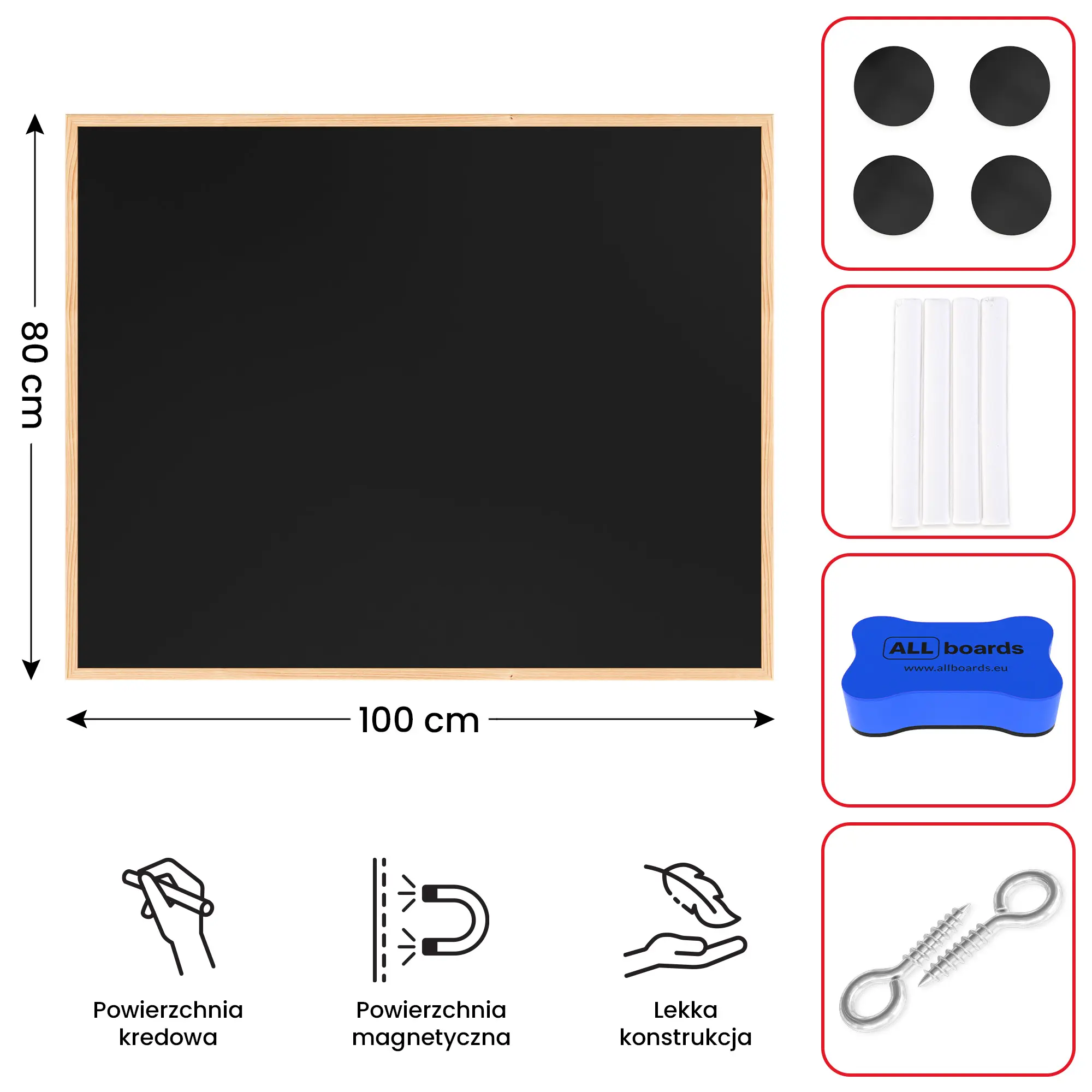 Tablica kredowa magnetyczna 100x80 cm czarna w ramie drewnianej + gratis