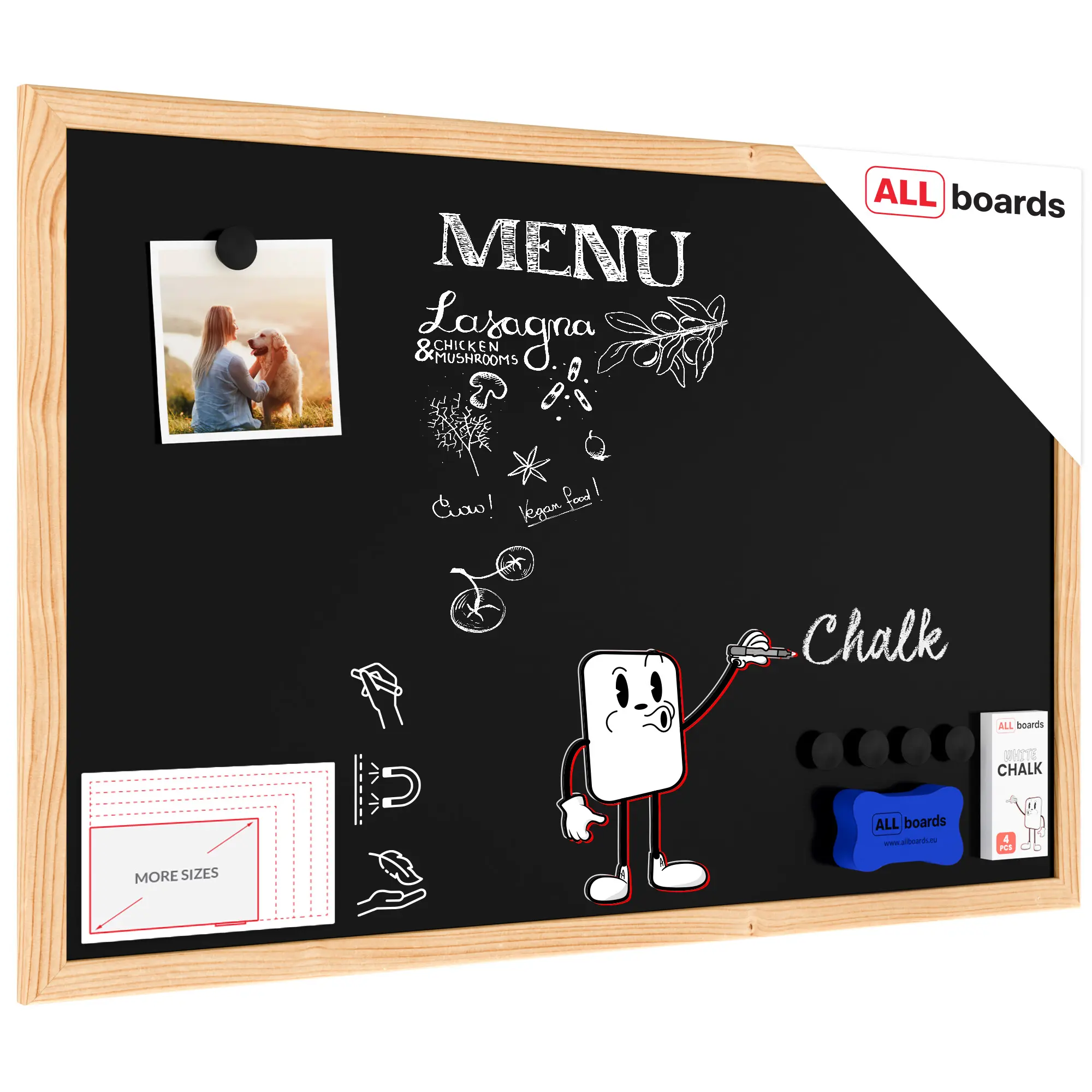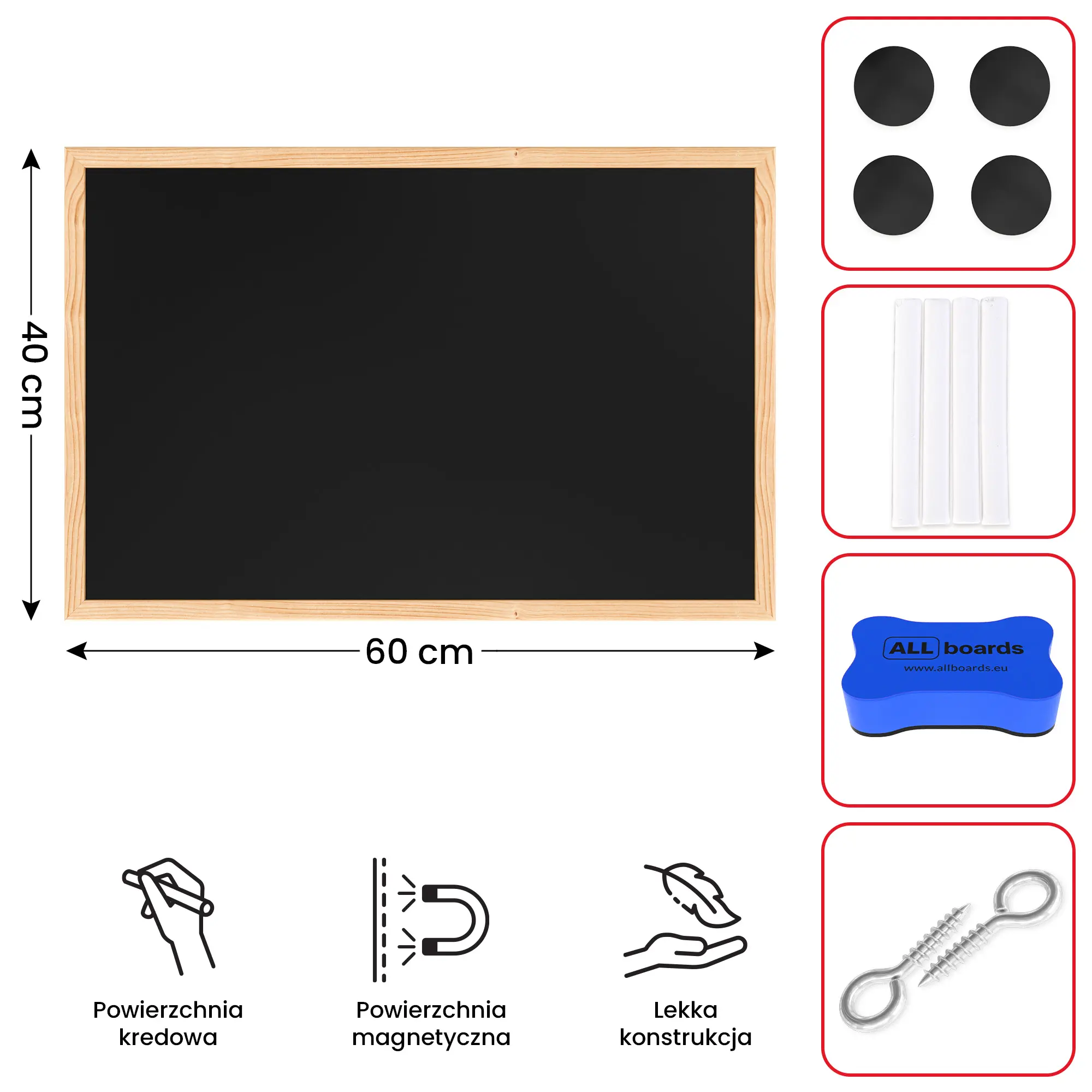 Tablica kredowa magnetyczna 60x40 czarna w ramie drewnianej + gratis
