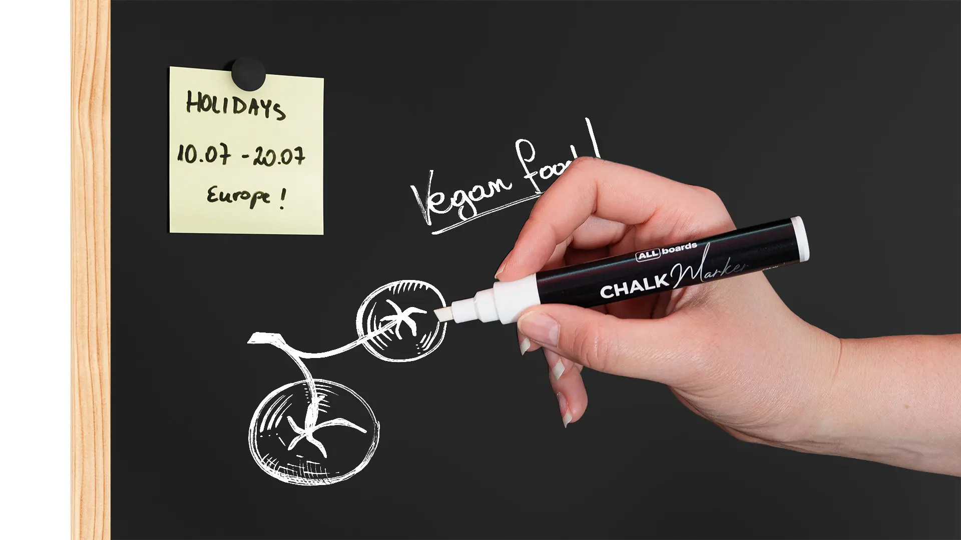 Modna i praktyczna - czarna tablica jest nie tylko funkcjonalna, ale także elegancka. Znakomicie komponuje się z wystrojem mieszkania lub biura. Jest też świetnym pomysłem do pokoju dziecięcego.